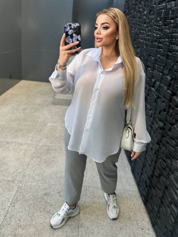 Стильна однотонна шифонова сорочка — ідеальний варіант для образів.