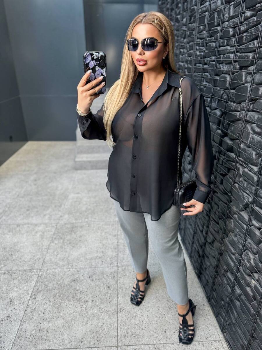 Стильна однотонна шифонова сорочка — ідеальний варіант для образів.