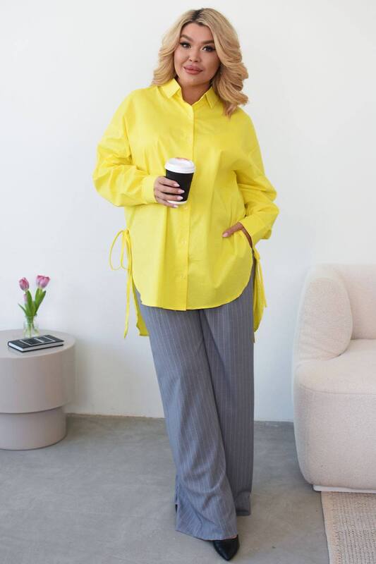 Подовжена сорочка з розрізами та завʼязками по боках-це стильний та універсальний елемент гардеробу , який поєднує в собі елегантність та комфорт.