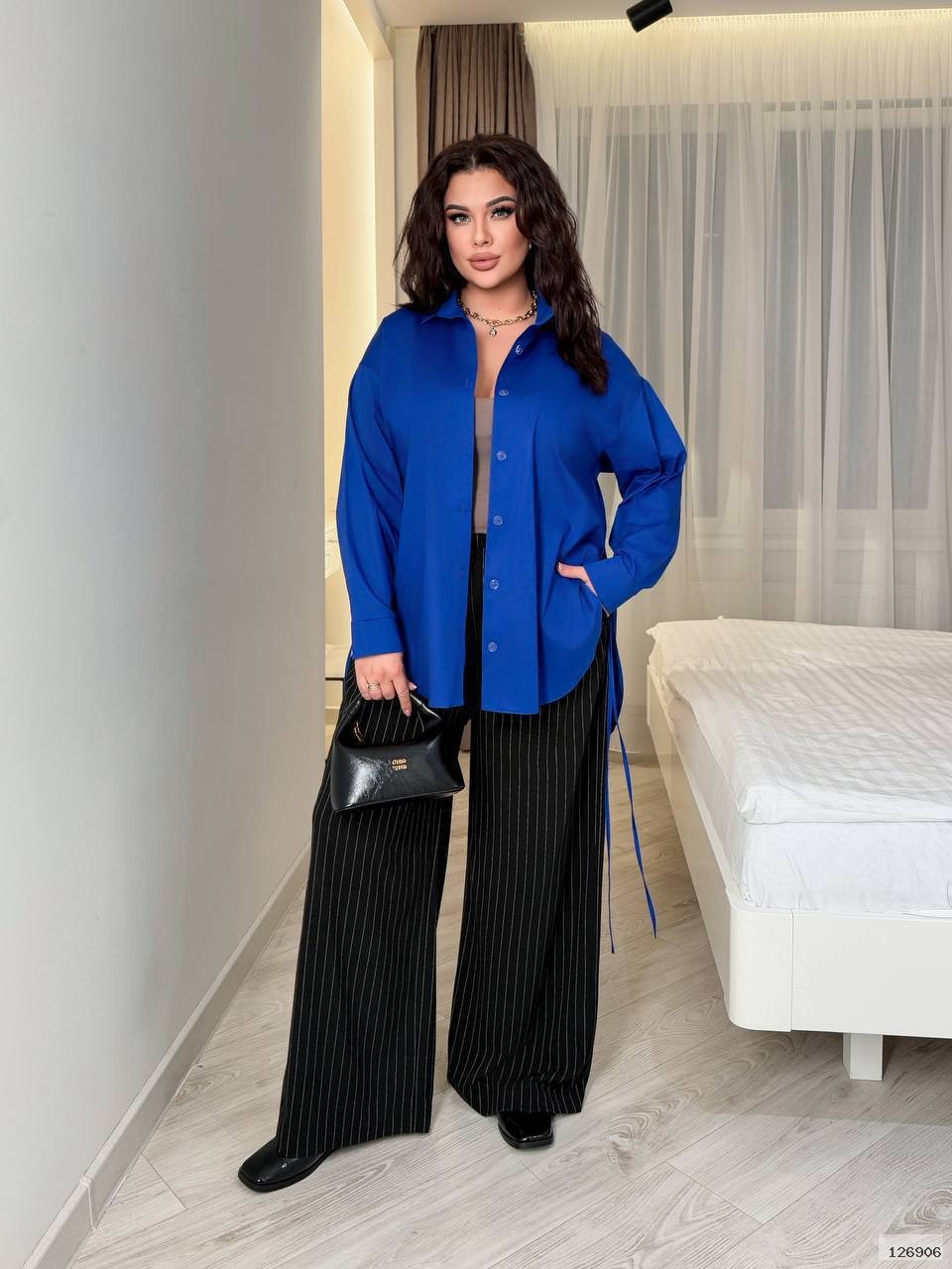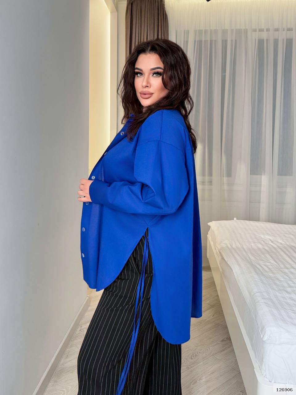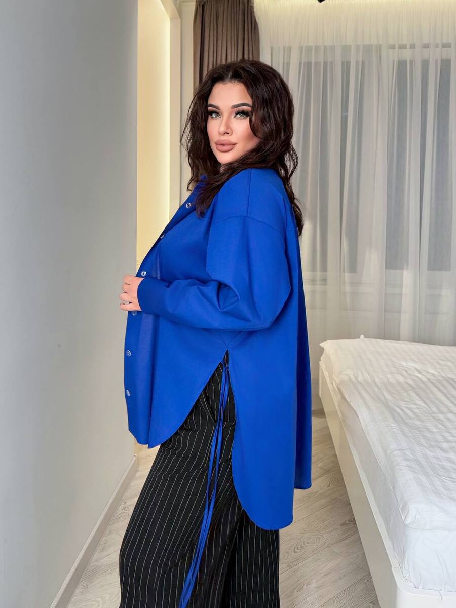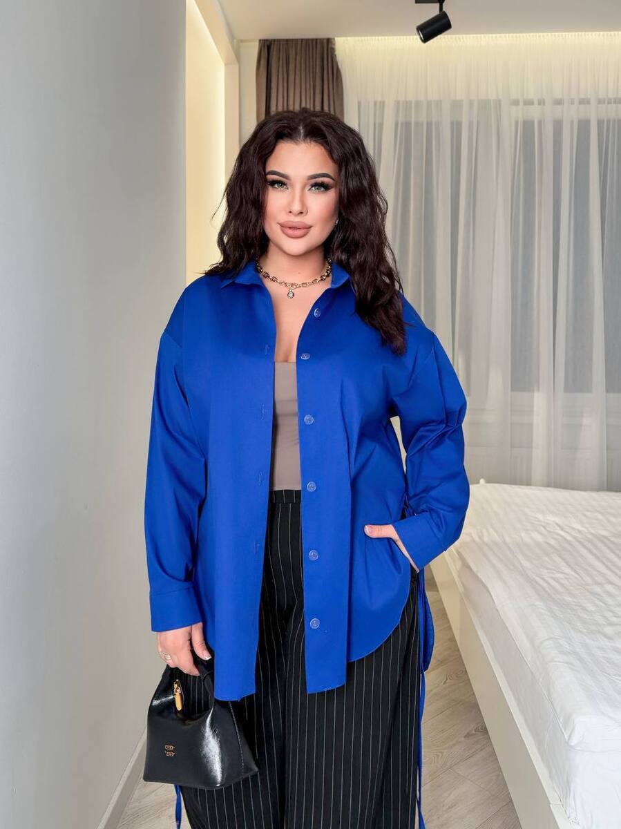 Подовжена сорочка з розрізами та завʼязками по боках-це стильний та універсальний елемент гардеробу , який поєднує в собі елегантність та комфорт.