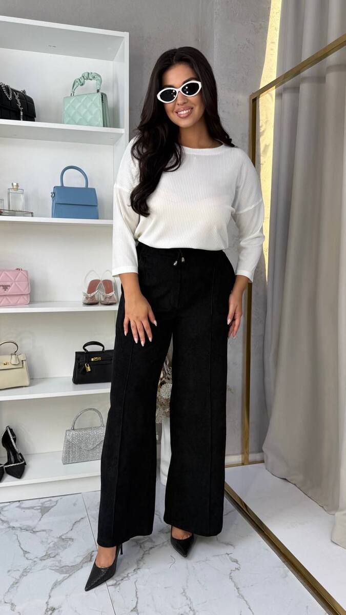 ВЕЛЬВЕТОВІ БРЮКИ ПРЯМОГО КРОЮ зі строчкою по переду.