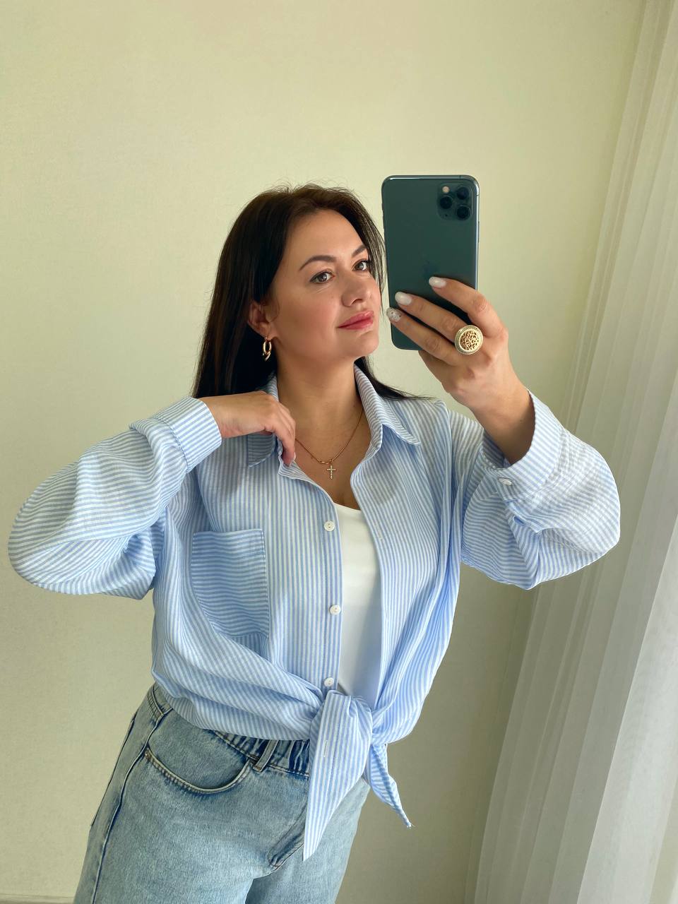 Сорочка оверсайз, з легкого тоненького льону, застібається на ґудзики