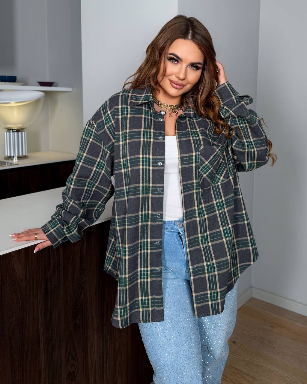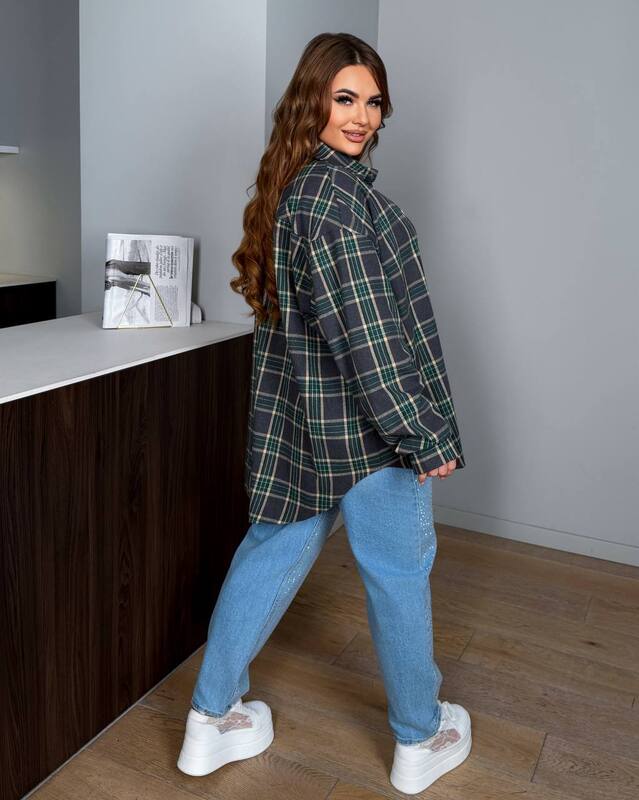 Стильна сорочка в клітинку з фланелі:вільний крій,комір і довгі рукави з манжетами на ґудзиках.Преміальна якість пошиття!