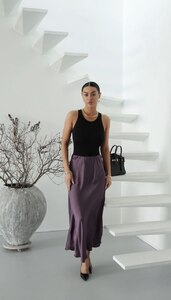 Спідниця міді - елегантний елемент гардеробу, що струмує, злегка розкльошеного крою, що створює жіночний силует. Вона приємна до тіла та універсальна: підходить для офісу, вечірніх виходів та стилю casual, поєднуючись з топами, светрами та жакетами.