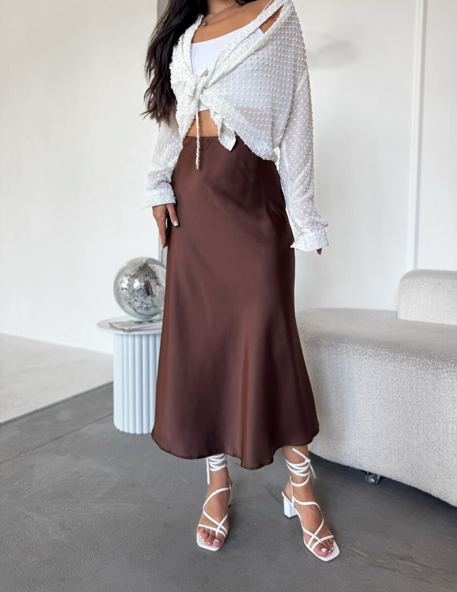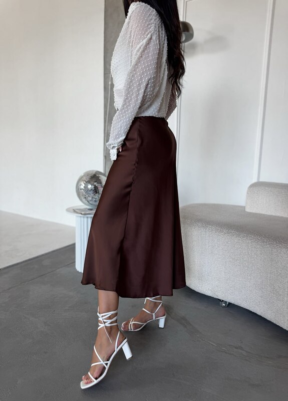 Спідниця міді - елегантний елемент гардеробу, що струмує, злегка розкльошеного крою, що створює жіночний силует. Вона приємна до тіла та універсальна: підходить для офісу, вечірніх виходів та стилю casual, поєднуючись з топами, светрами та жакетами.