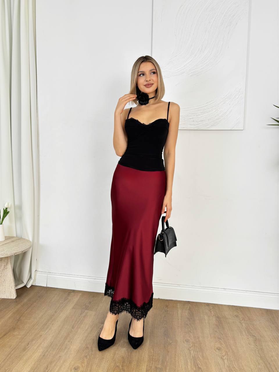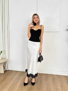 Must-have твого гардероба — шовкова спідниця з мереживом , що підкорює серця з першого погляду. Комбінуй з корсетами, базовими топами або класичними жакетами Шовк Армані ідеально лягає по фігурі, підкреслюючи силует.