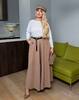 СПІДНИЦЯ-БРЮКИ - модний тренд сезону додає жіночності та елегантності образу. Вільний крій складки по переду ,висока талія , пояс частково на гумці. Шльовки , пояс з еко шкіри в комплекті Косі кишені в бічних швах.