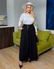 СПІДНИЦЯ-БРЮКИ - модний тренд сезону додає жіночності та елегантності образу. Вільний крій складки по переду ,висока талія , пояс частково на гумці. Шльовки , пояс з еко шкіри в комплекті Косі кишені в бічних швах.