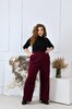 Стильні прямі широкі брюки-палаццо виготовлені з якісного трикотажу тринитка з начосом, що забезпечує середню розтяжність матеріалу та комфорт під час носіння. Ці брюки мають посадку, яка розташована трохи вище середньої, завдяки чому вони стильно підкреслюють талію, а еластична резинка по талії додає зручності і дозволяє прекрасно підлаштуватися під фігуру. В бокових швах розташовані практичні кишені, які не тільки доповнюють дизайн виробу, але й додають функціональності й зручності в повсякденному використанні.