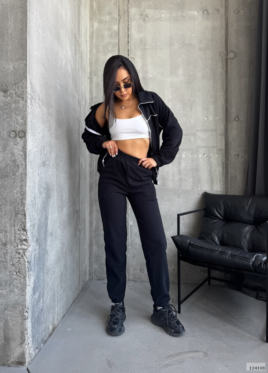 Кофта вільного крою, застібається на блискавку. Штани джогери, 2-і кишені. Кофта та штани оброблені кантом.