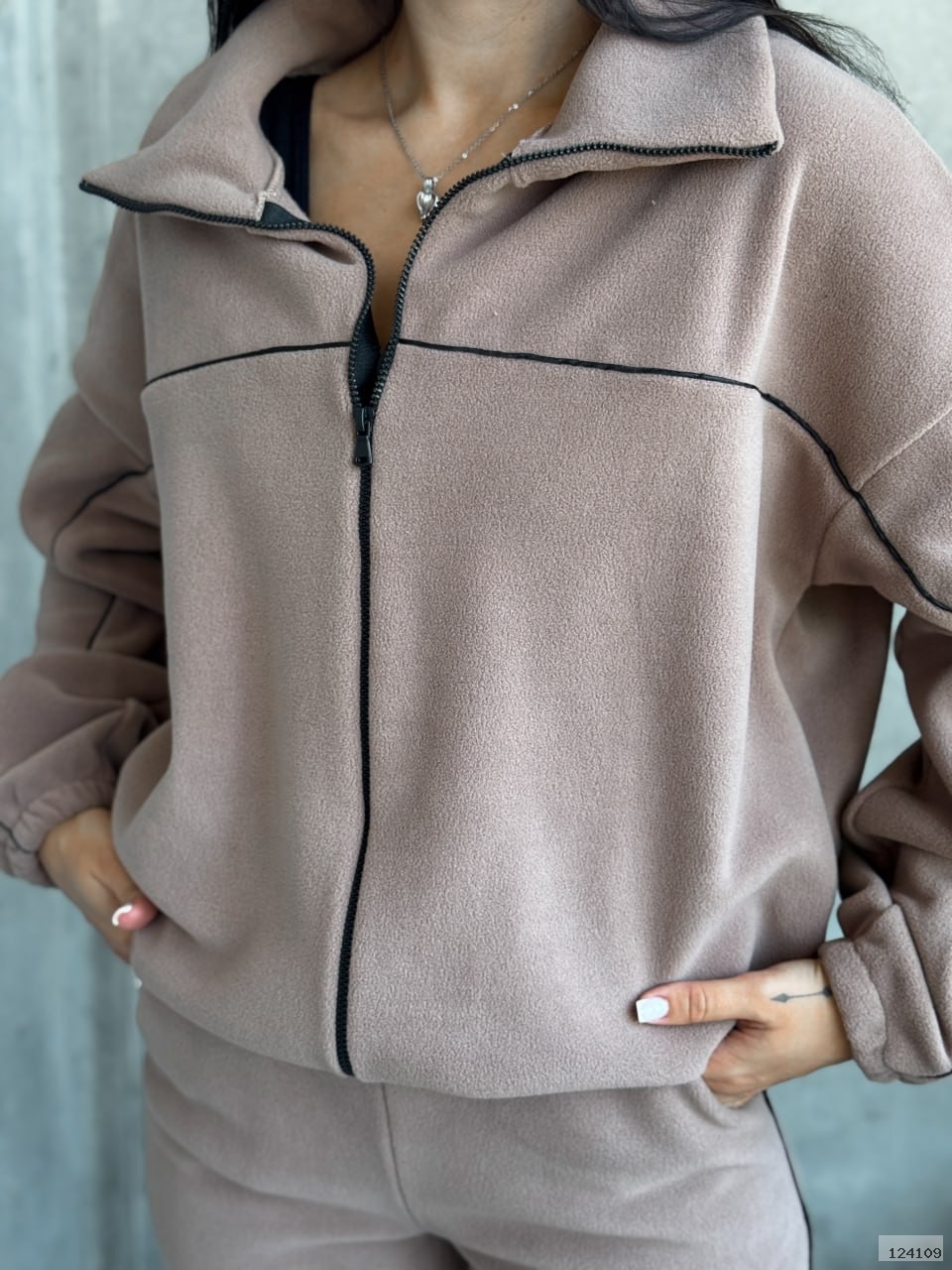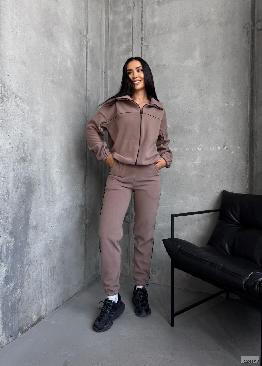 Кофта вільного крою, застібається на блискавку. Штани джогери, 2-і кишені. Кофта та штани оброблені кантом.