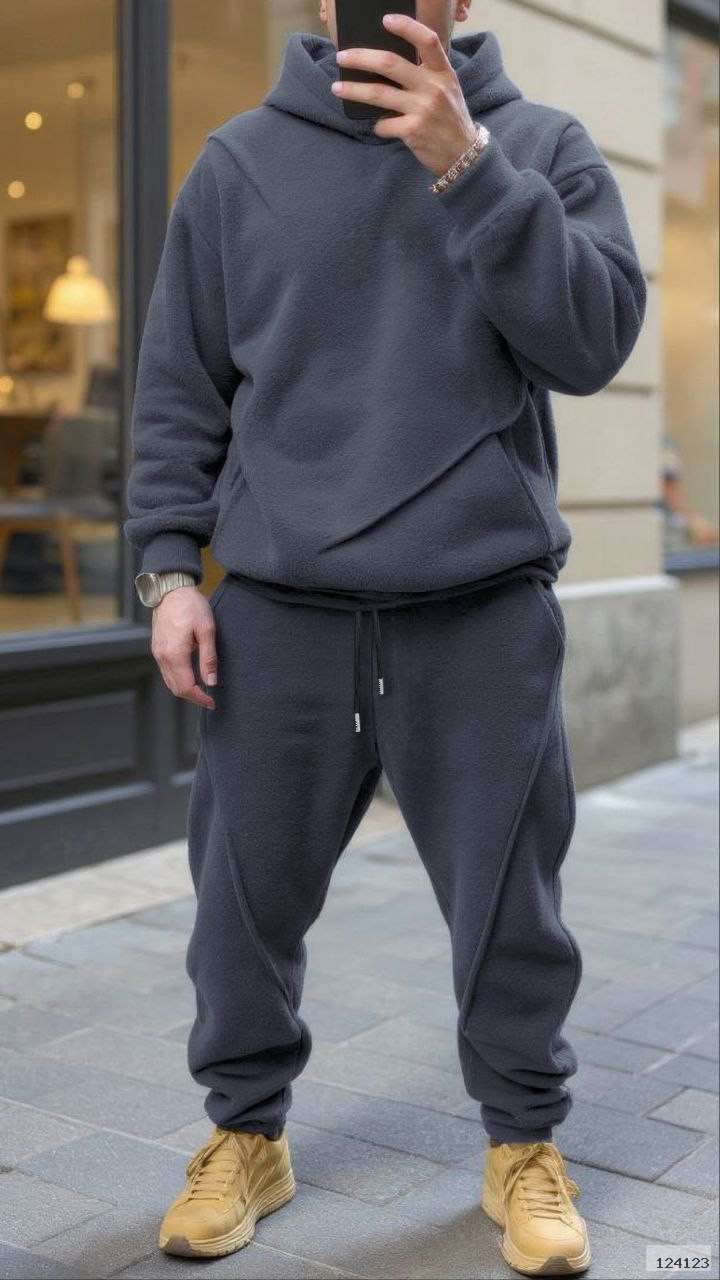 Худі має стильні декоративні шви.Штани з манжетами на резинці,з бічними кишенями,декоративними швами та шнурком для регулювання талії.