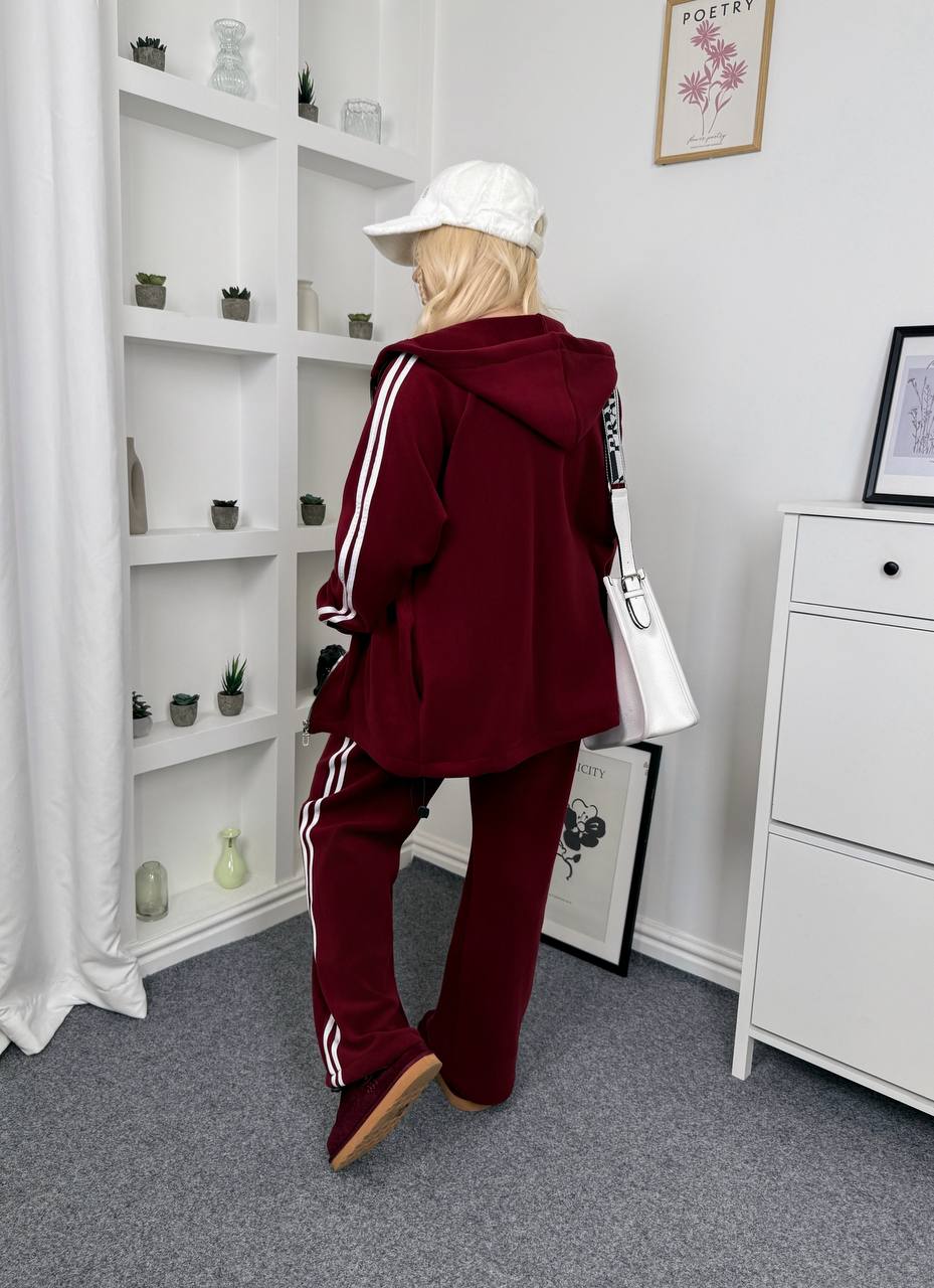 Трендовий костюм двійка оверсайз з лампасом. Спортивка по низу регулюється затяжками,що дає змогу носити її в різних варіантах.Палацо з високою посадкою та вільного крою,що робить їх мега комфортними.Низ регулюэтьься затяжками,що дає змогу носити їх джогерами.