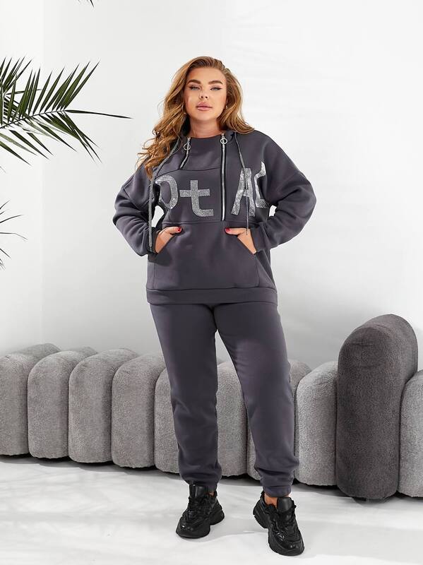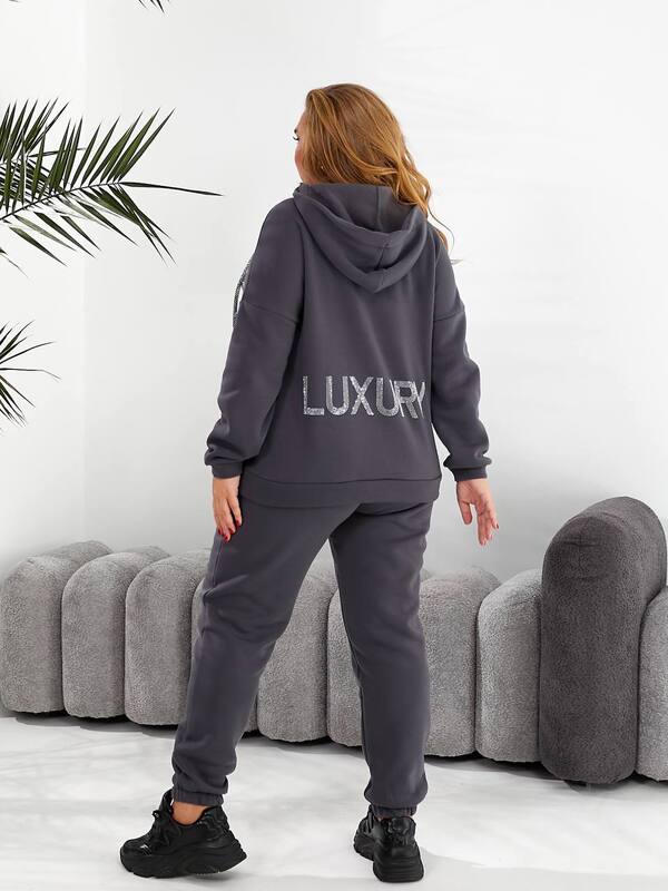 Стильний утеплений костюмчик на кожен день. Кофта вільного крою, зручний глибокий капюшон, декорована камінням.