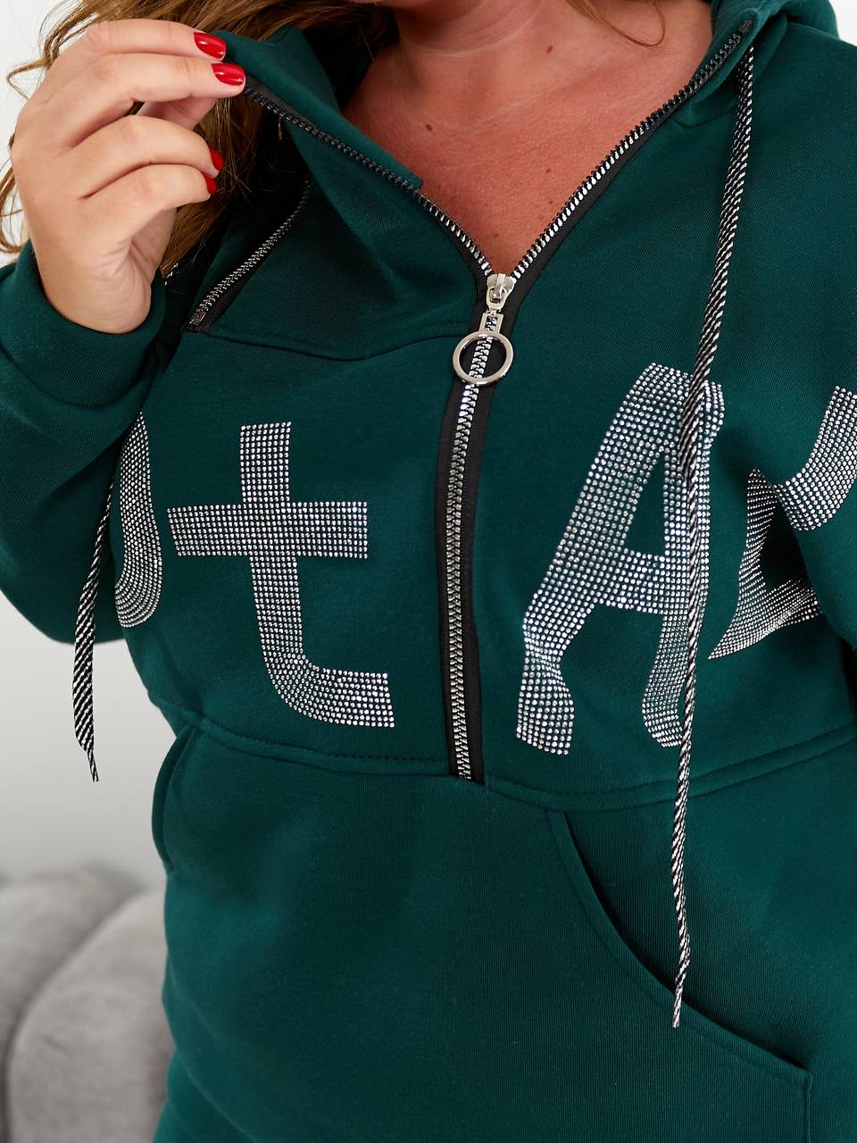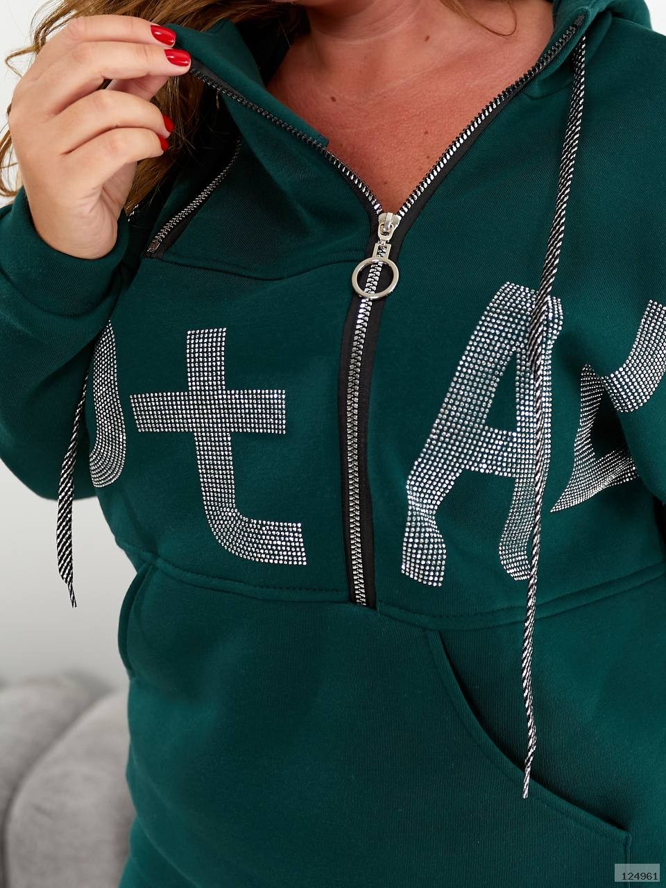 Стильний утеплений костюмчик на кожен день. Кофта вільного крою, зручний глибокий капюшон, декорована камінням.