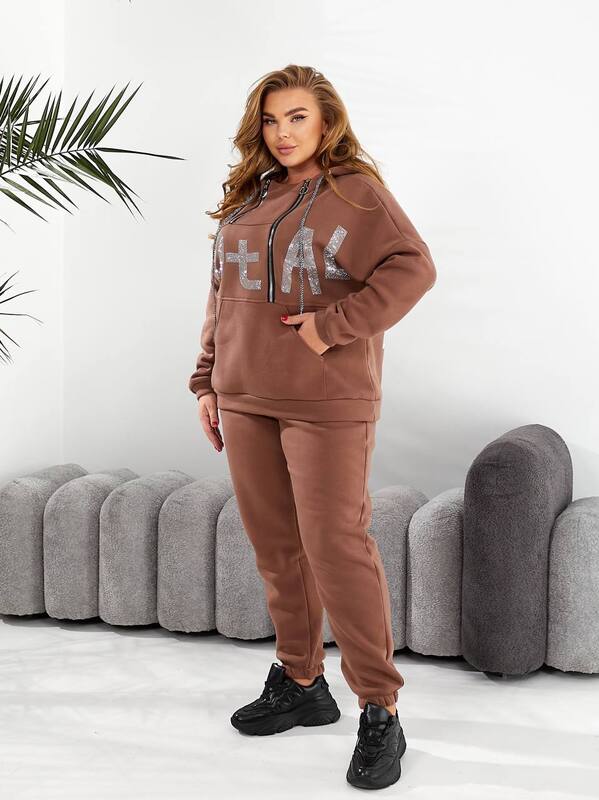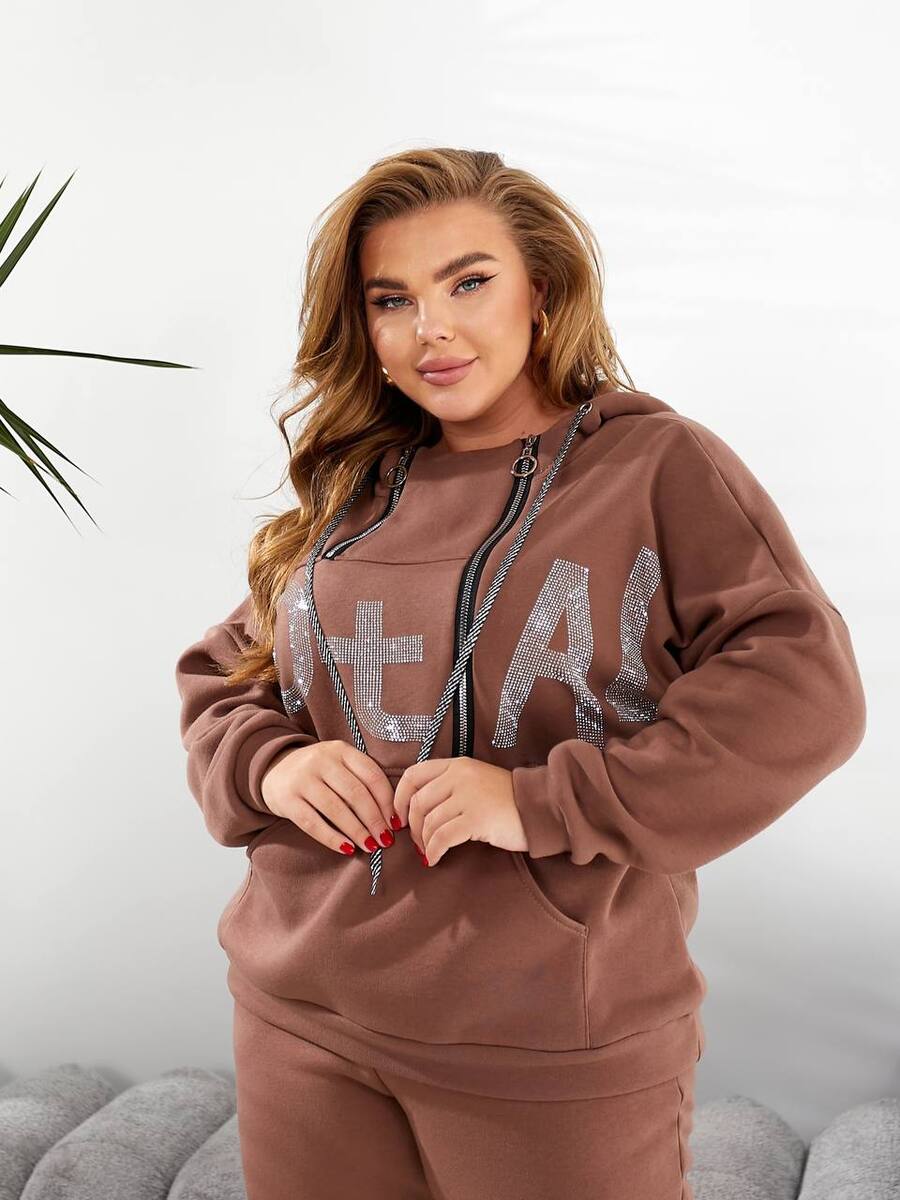Стильний утеплений костюмчик на кожен день. Кофта вільного крою, зручний глибокий капюшон, декорована камінням.