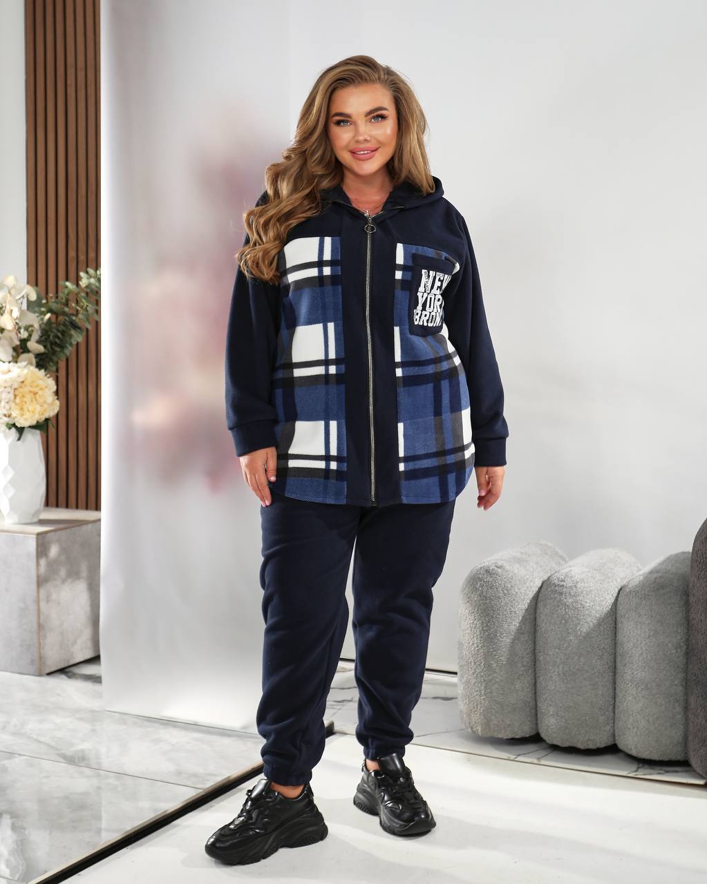 Сорочка з капюшоном та модним клітинчастим принтом створює ефектний образ, а зручні штани дарують комфорт і свободу рухів. Чудово підходить для прогулянок, відпочинку та повсякденного стилю.
