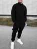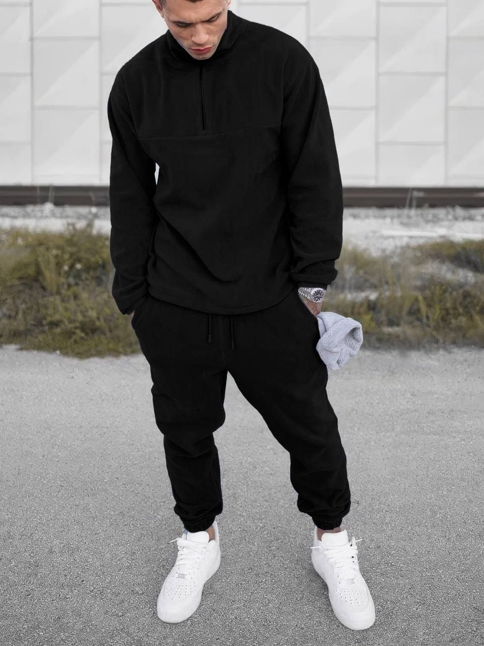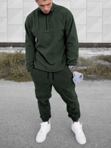 Верх костюма має високий комір на блискавці,що додає практичності й забезпечує додатковий захист від вітру.Штани виконані у вільному стилі з еластичним поясом зі шнурком.