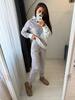 Довжина худі 70 см, обхват грудей 100–108 см, обхват стегон 104–114 см, довжина штанів 101 см.