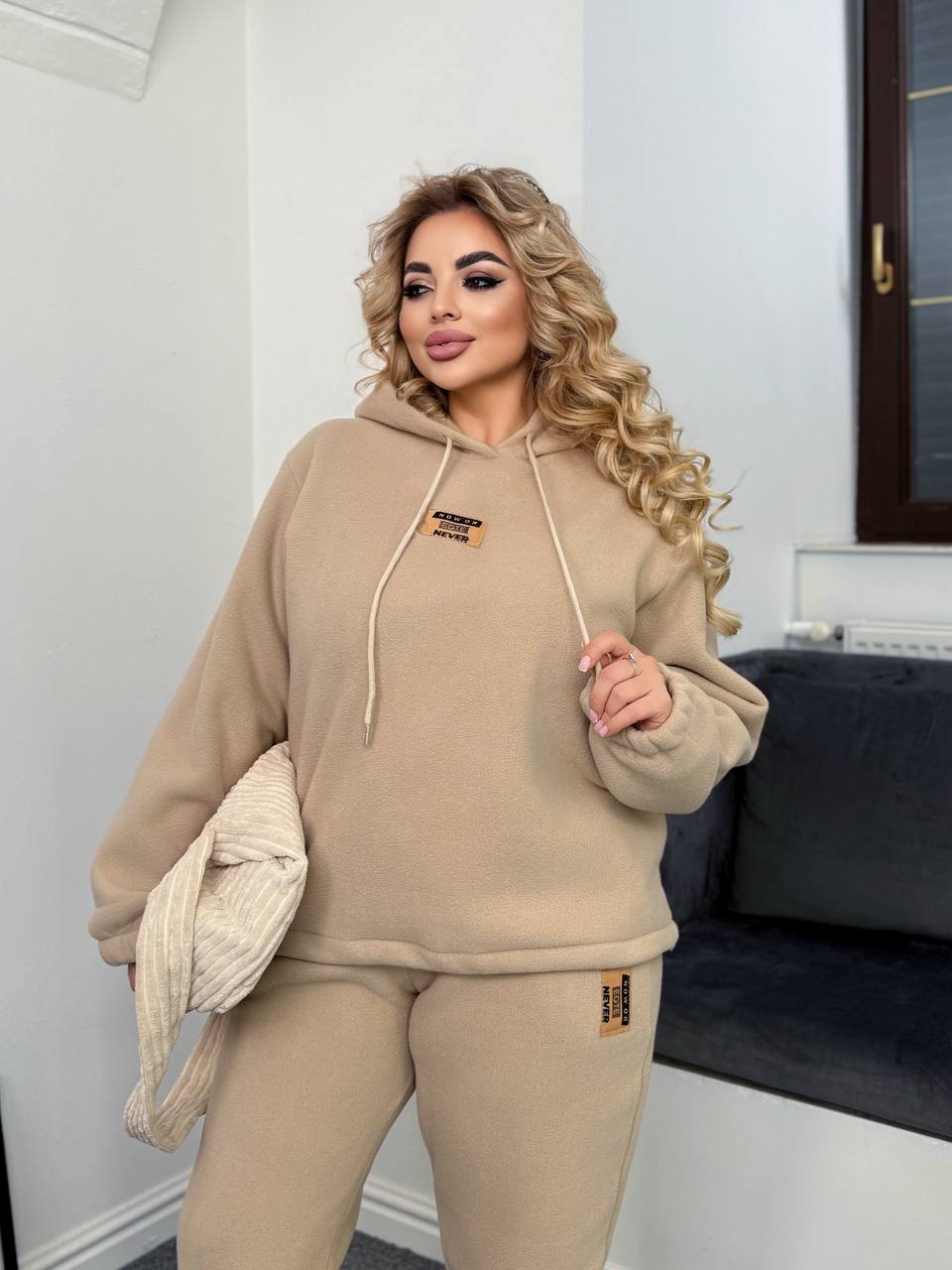 Стильний спорт костюм для прогулянок. Оверсайз. Худі регулюється затяжками по низу. Завдяки цьому ви зможете носити його як подовженним так піднятим .