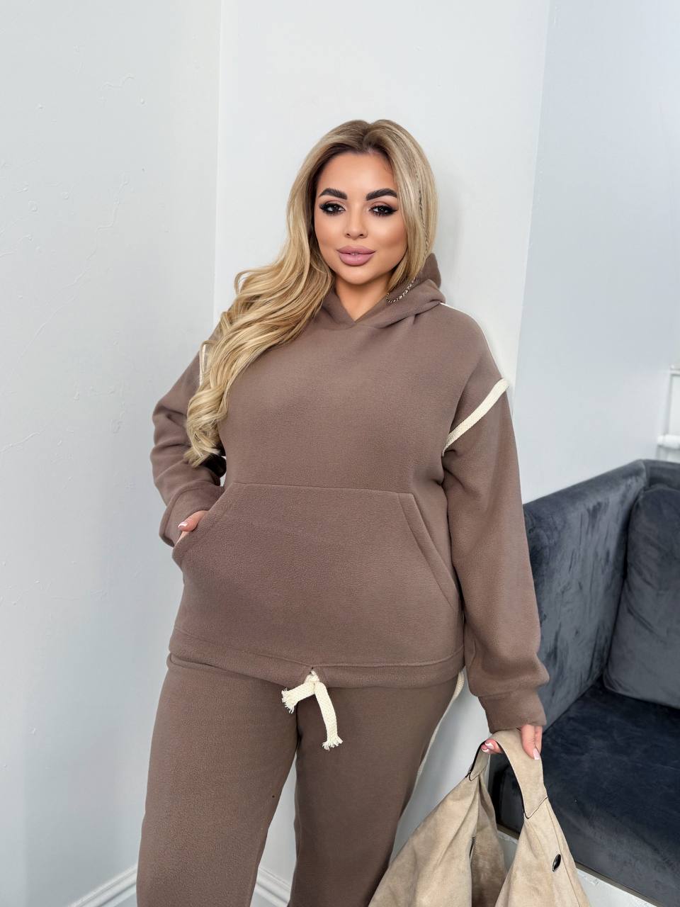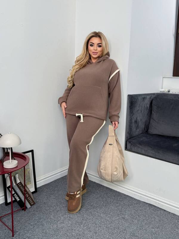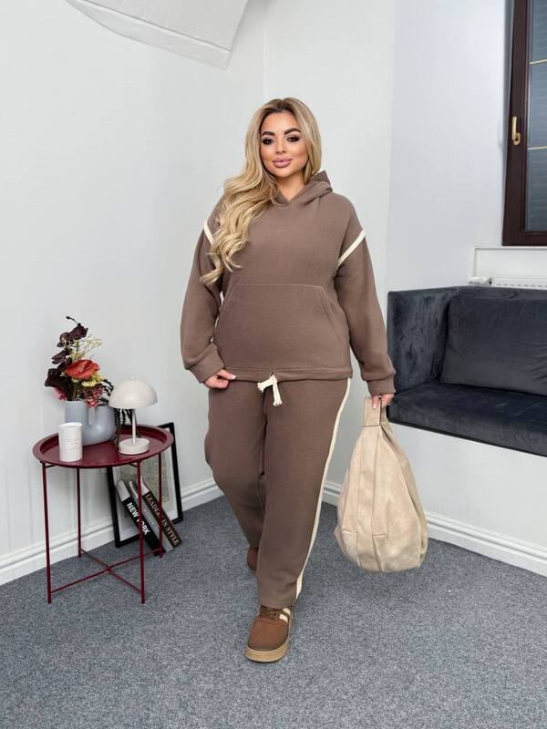 Зручний та стильний костюм із приємної на дотик тканини — ідеальний вибір для прохолодних днів.