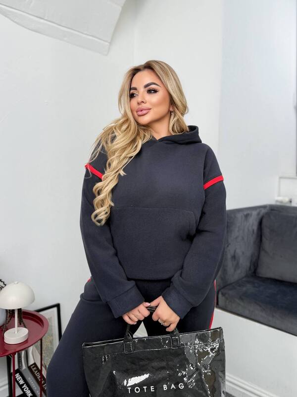 Зручний та стильний костюм із приємної на дотик тканини — ідеальний вибір для прохолодних днів.