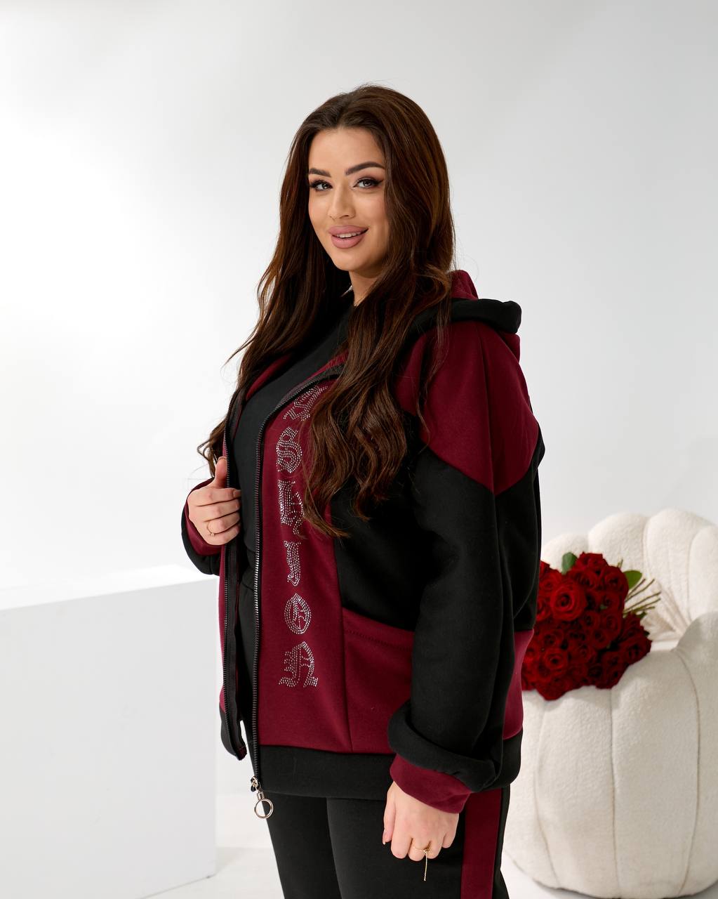 | Ткань: | трьохнитка на флісі — тепла, м’яка, приємна до тіла. |