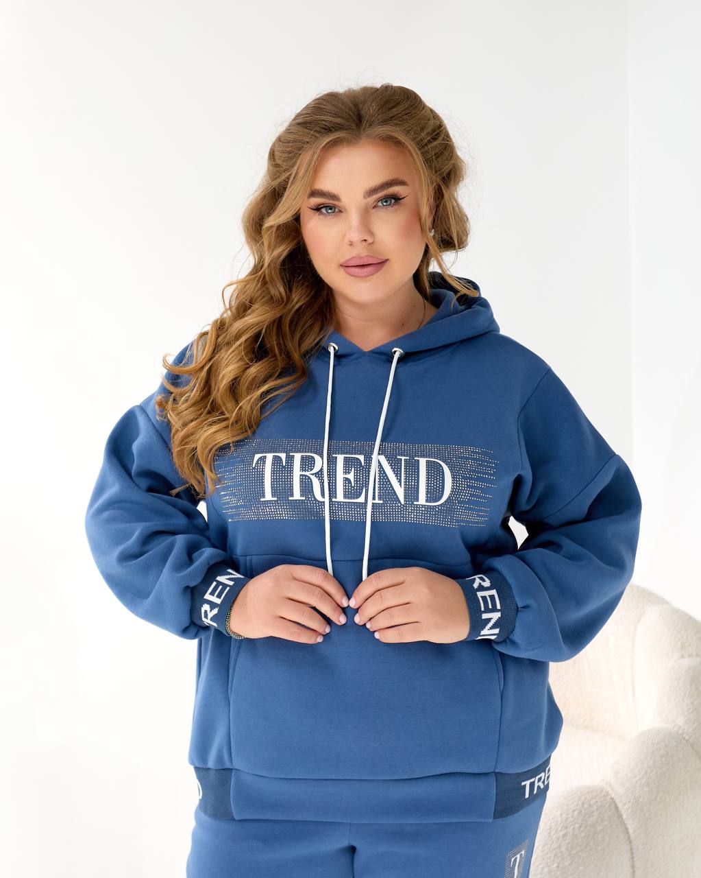 Худі Oversize з капюшоном та яскравим акцентом: принт TREND з мерехтливими стразами/блиском (видно на фото! ) + Джогери з м'якої тринитки на флісі!