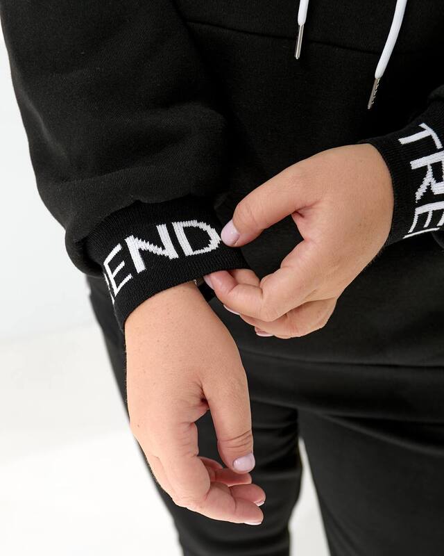 Худі Oversize з капюшоном та яскравим акцентом: принт TREND з мерехтливими стразами/блиском (видно на фото! ) + Джогери з м'якої тринитки на флісі!