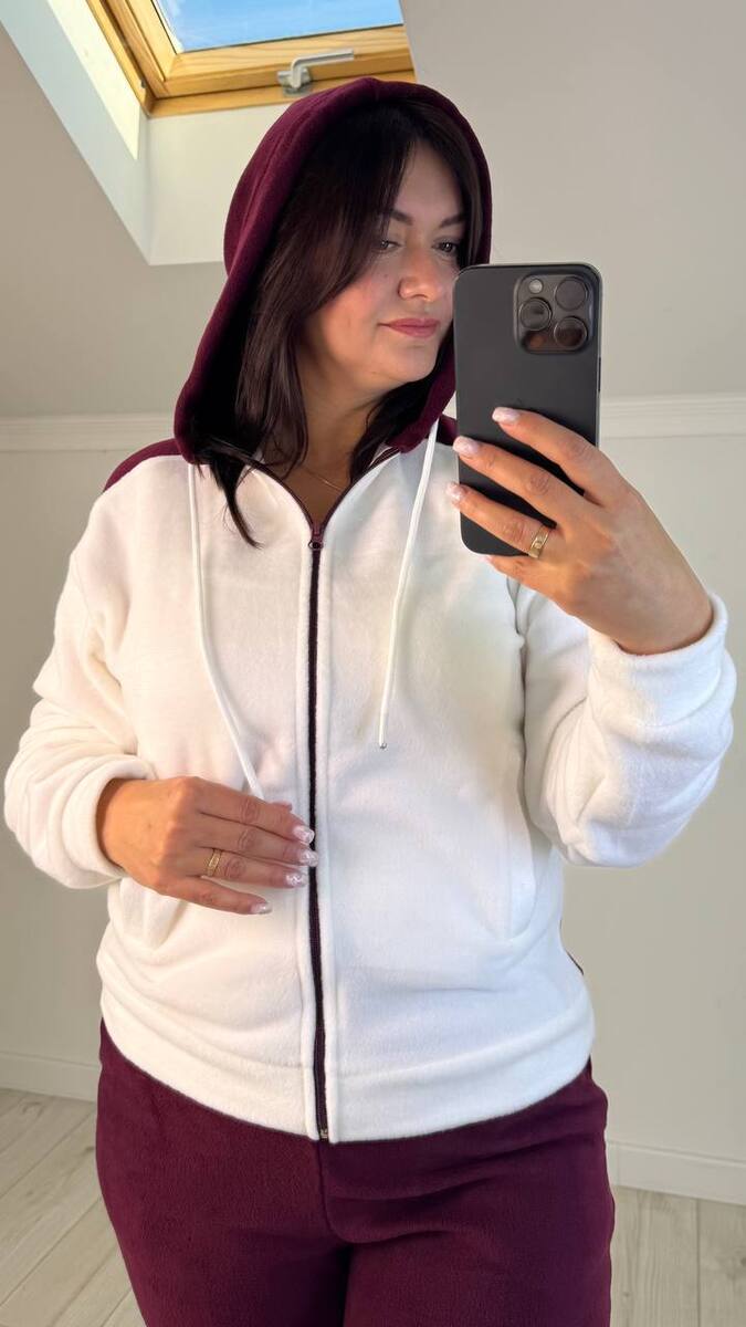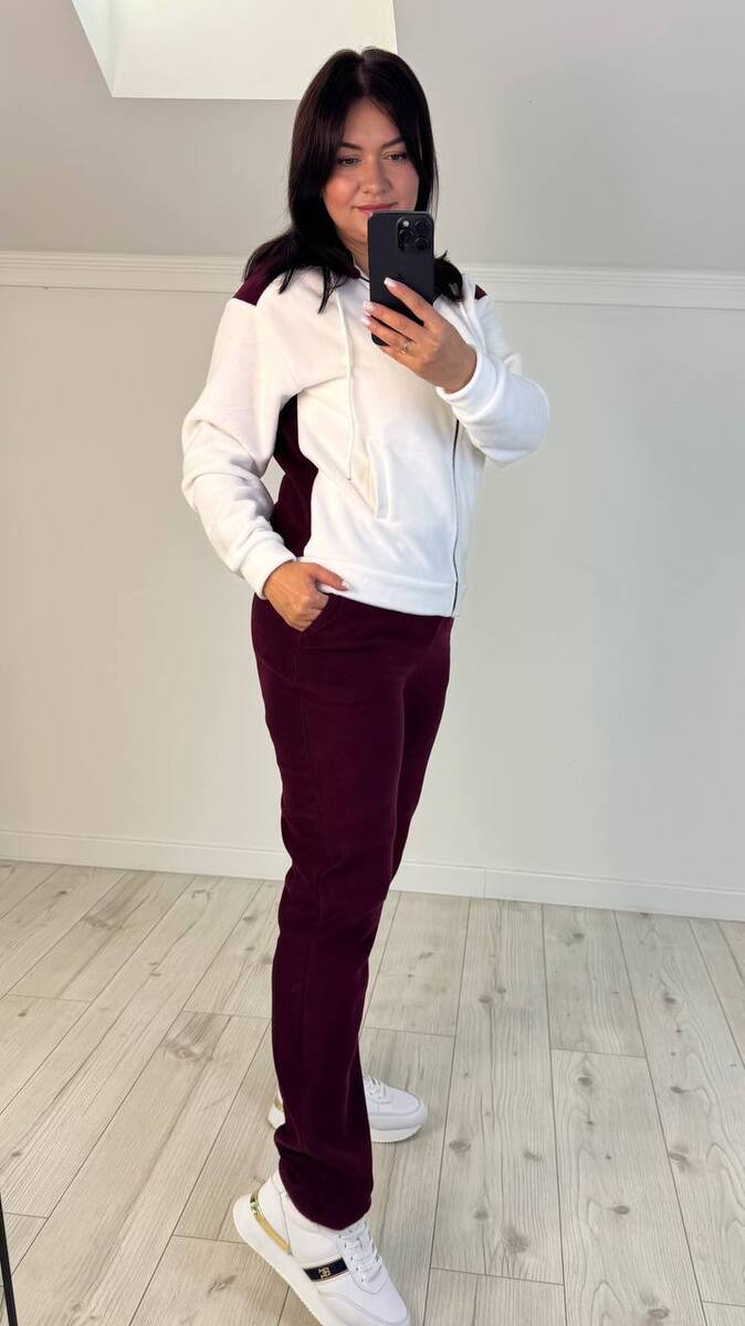 Костюм спортивний штани та кофта. Кофта із капюшоном,на блискавці, рукава на манжетах, з двома карманами. Штани прямого крою до низу, посадка висока, талія на резинці, із кишенями. Дуже теплий, тканина мʼягенька та щільна