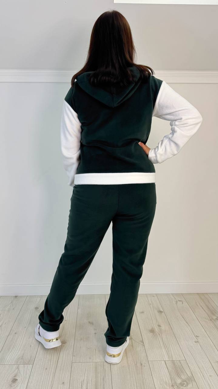 Костюм спортивний штани та кофта. Кофта із капюшоном,на блискавці, рукава на манжетах, з двома карманами. Штани прямого крою до низу, посадка висока, талія на резинці, із кишенями. Дуже теплий, тканина мʼягенька та щільна
