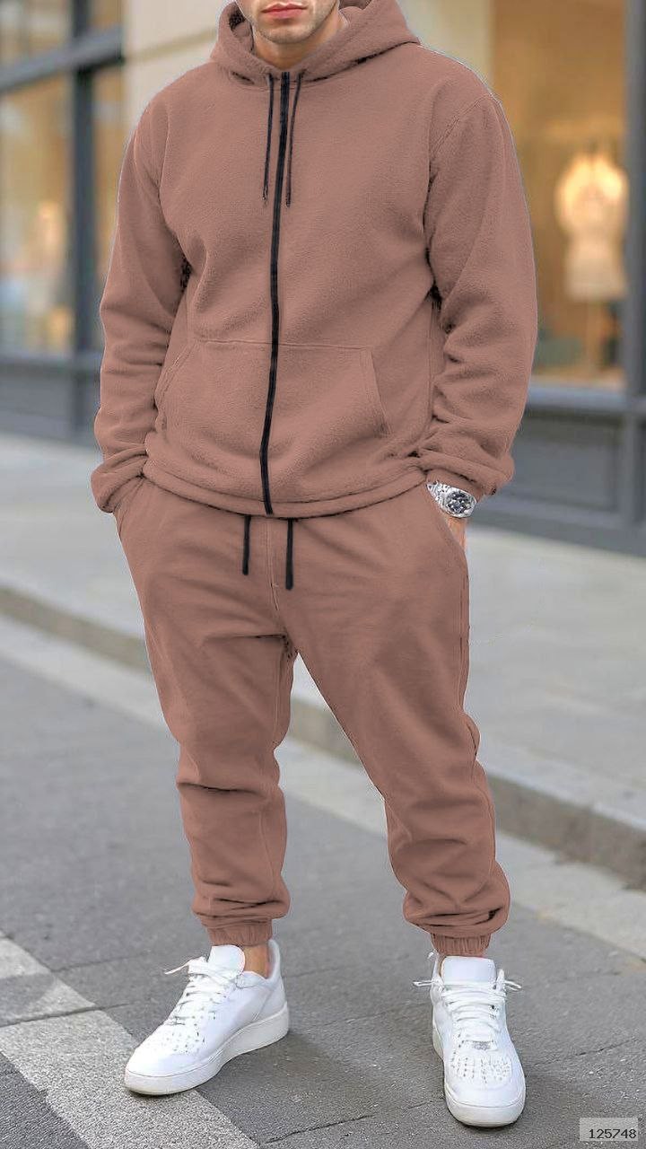 Кофта на блискавці з капюшоном і накладними кишенями.Штани з манжетами на резинці,бічними кишенями та шнурком для регулювання талії.