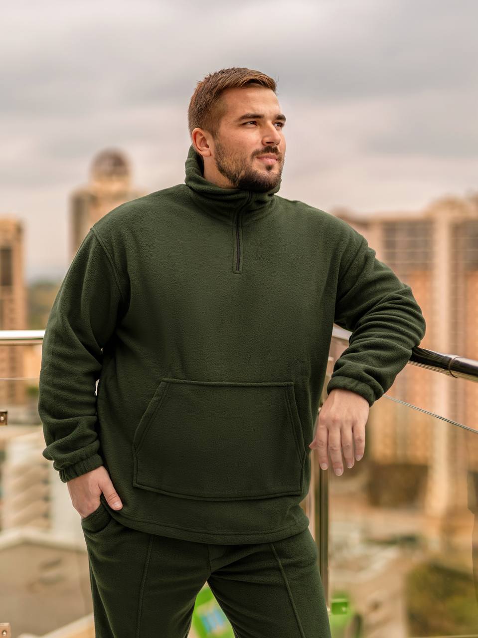Кофта оснащена великою кишенею “кенгуру” спереду,яка додає практичності.Додатковою особливістю є інтегрований капюшон,який можна застібати блискавкою аж до носа,що надає можливість додатково захистити обличчя від холоду. Капюшон також має регулювальний шнурок для кращого прилягання.