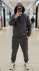 Кофта на блискавці з капюшоном і накладними кишенями.Штани з бічними кишенями,шнурком на талії та резинкою внизу.Костюм доповнений стильними нашивками.