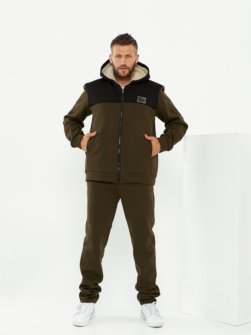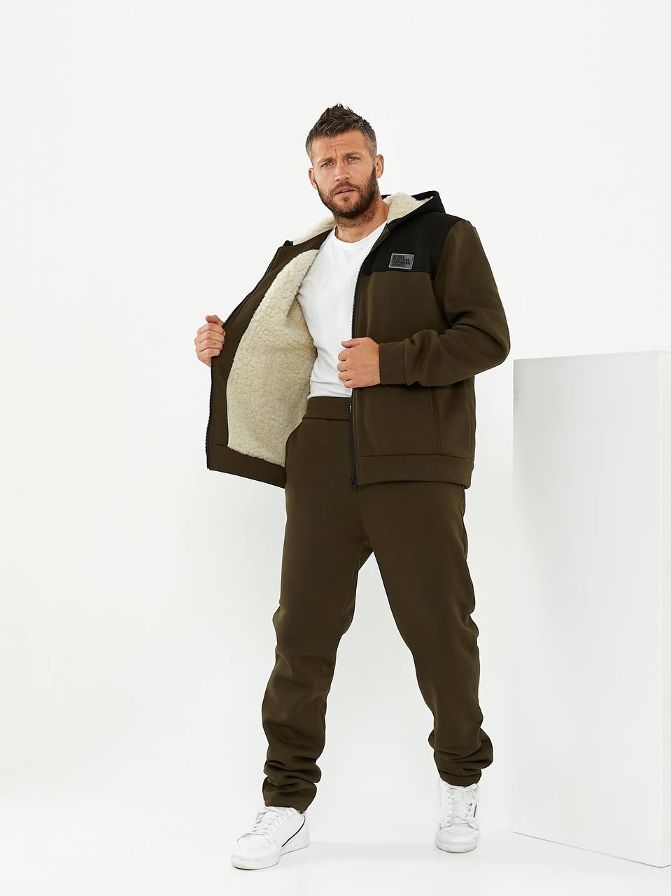 Супер теплий чоловічий костюм на хутрі, стильні вставки, гарний крій.