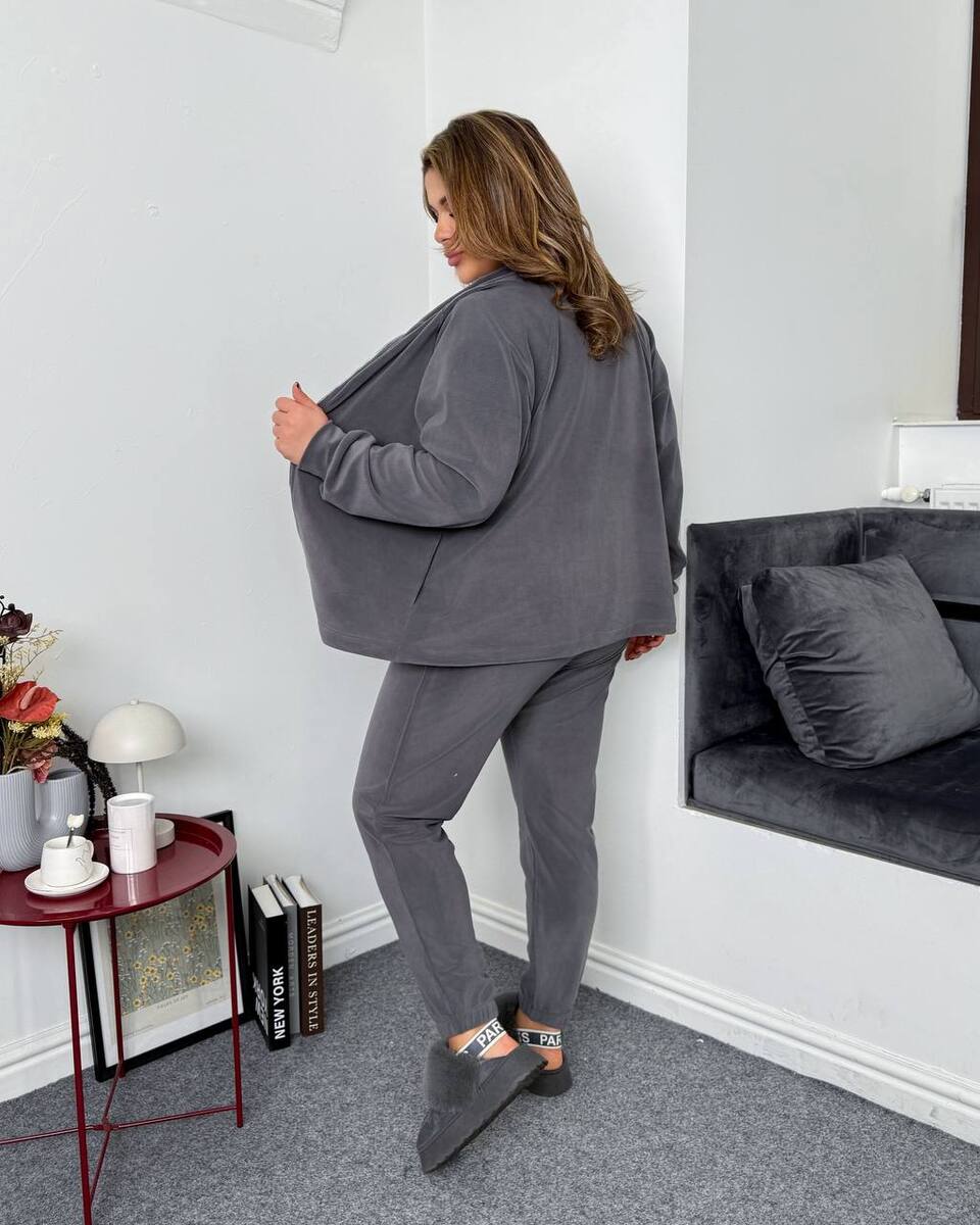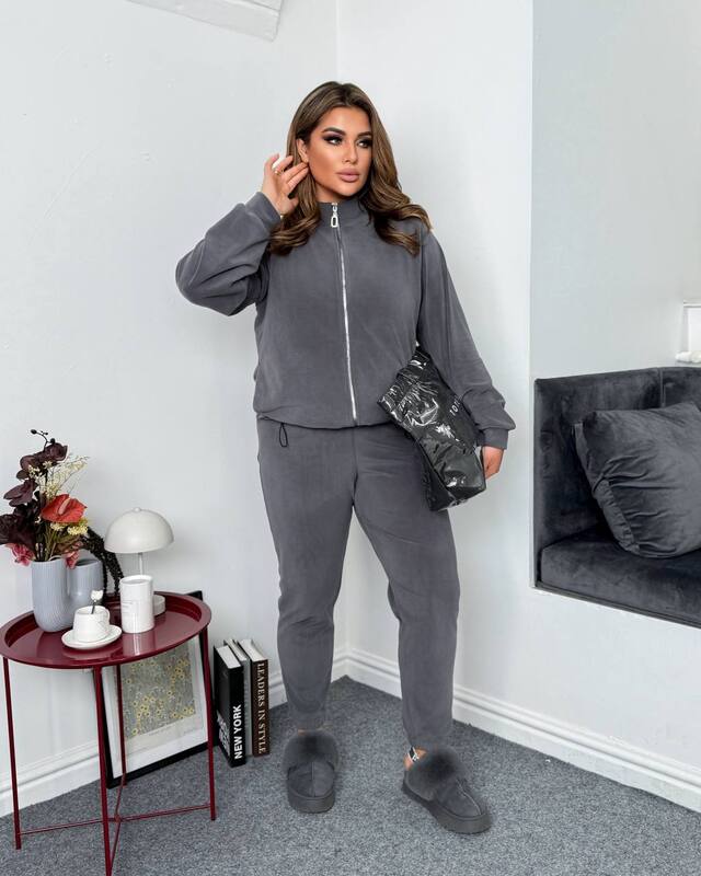 Теплий спортивний костюм: (кофта на змійці з кішкнями, по низу фіксатор з утяжкою + джогери з високою посадкою, з кішенями).