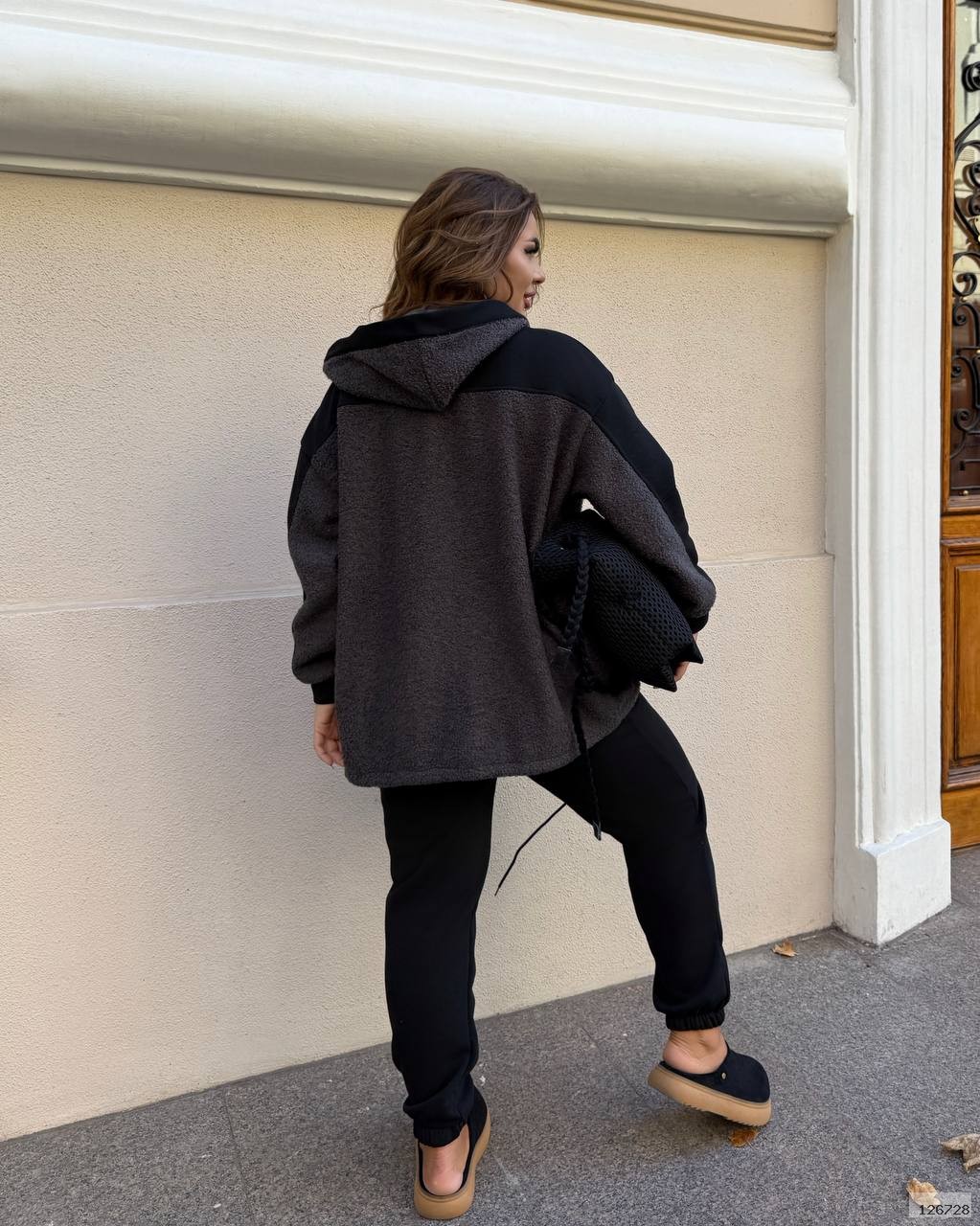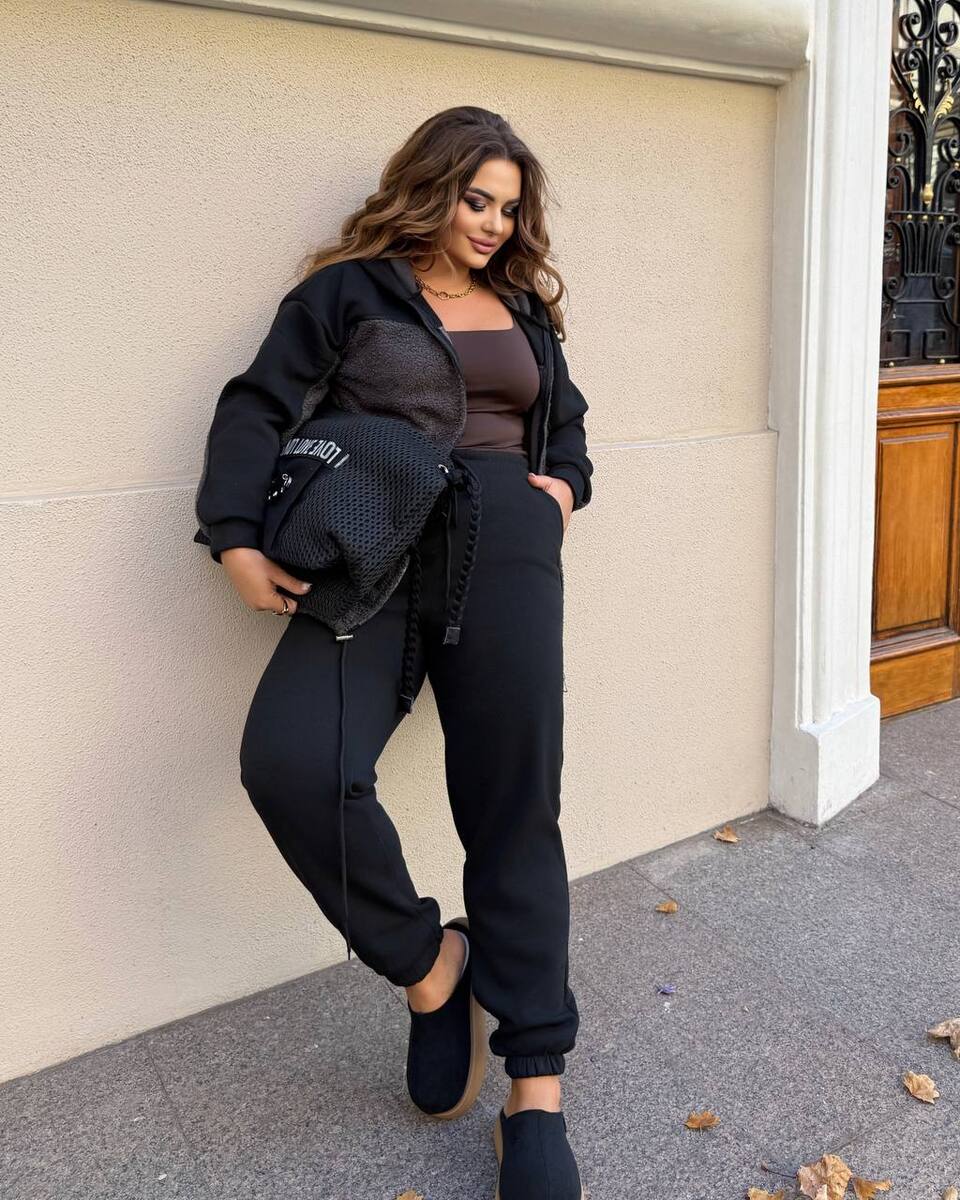 | Ткань: | теплий еко баранчик на флісі, комбінований чорною Хб стрейч триниткою на флісі |