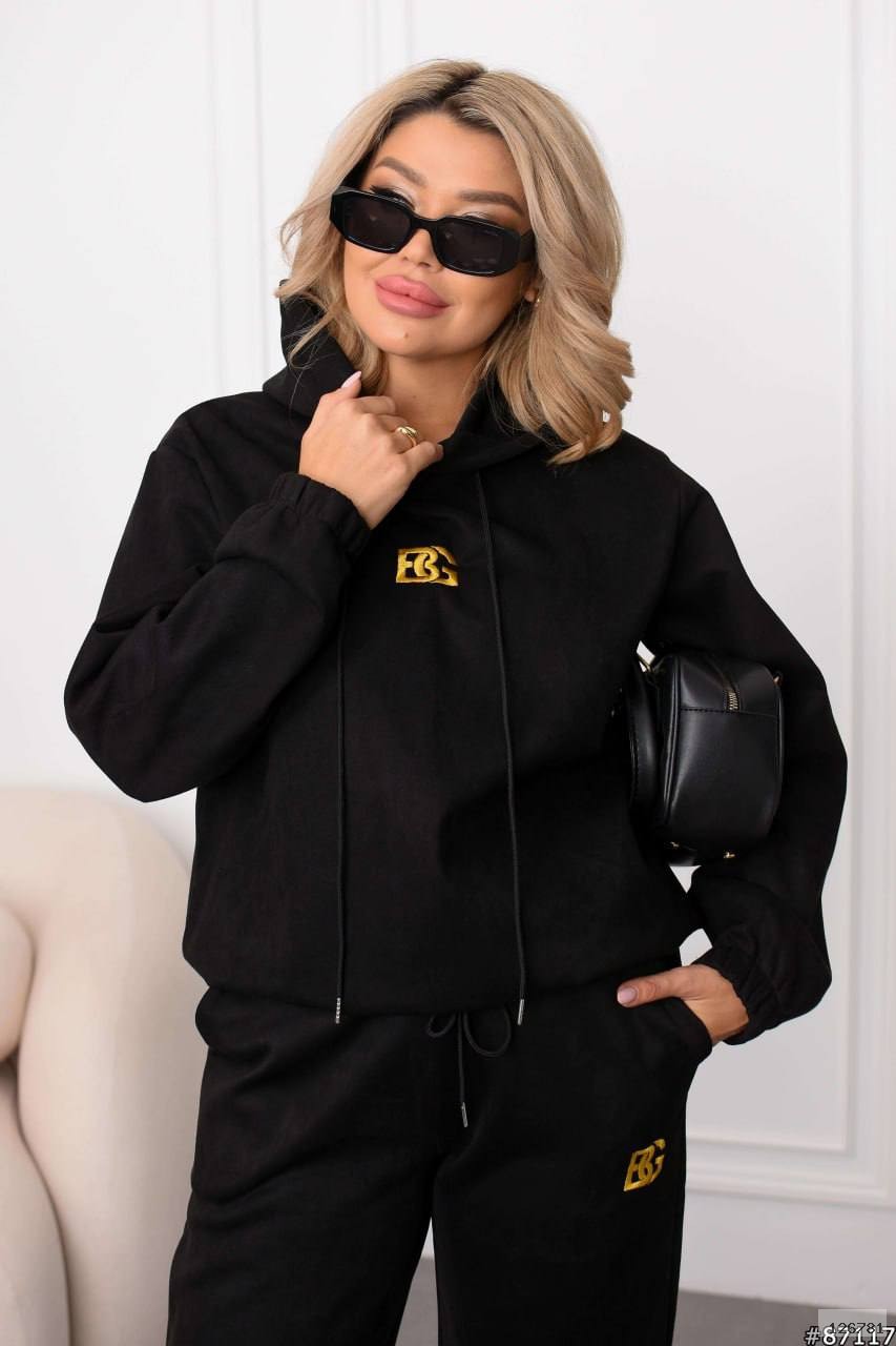 Стильний спорт костюм з вишивкою для прогулянок.Оверсайз.Худі регулюється затяжками по низу.Завдяки цьому ви зможете носити його як подовженним так піднятим
