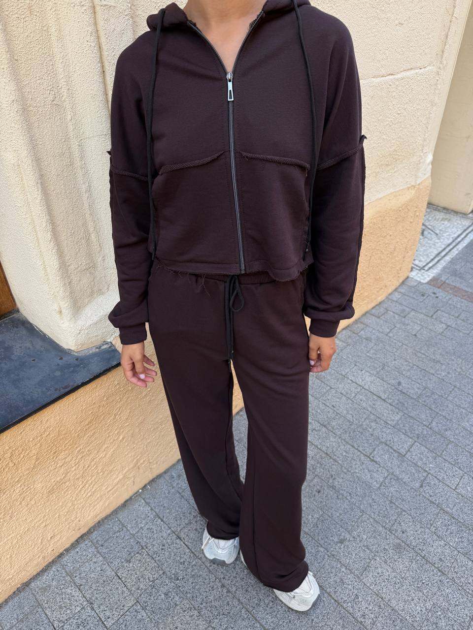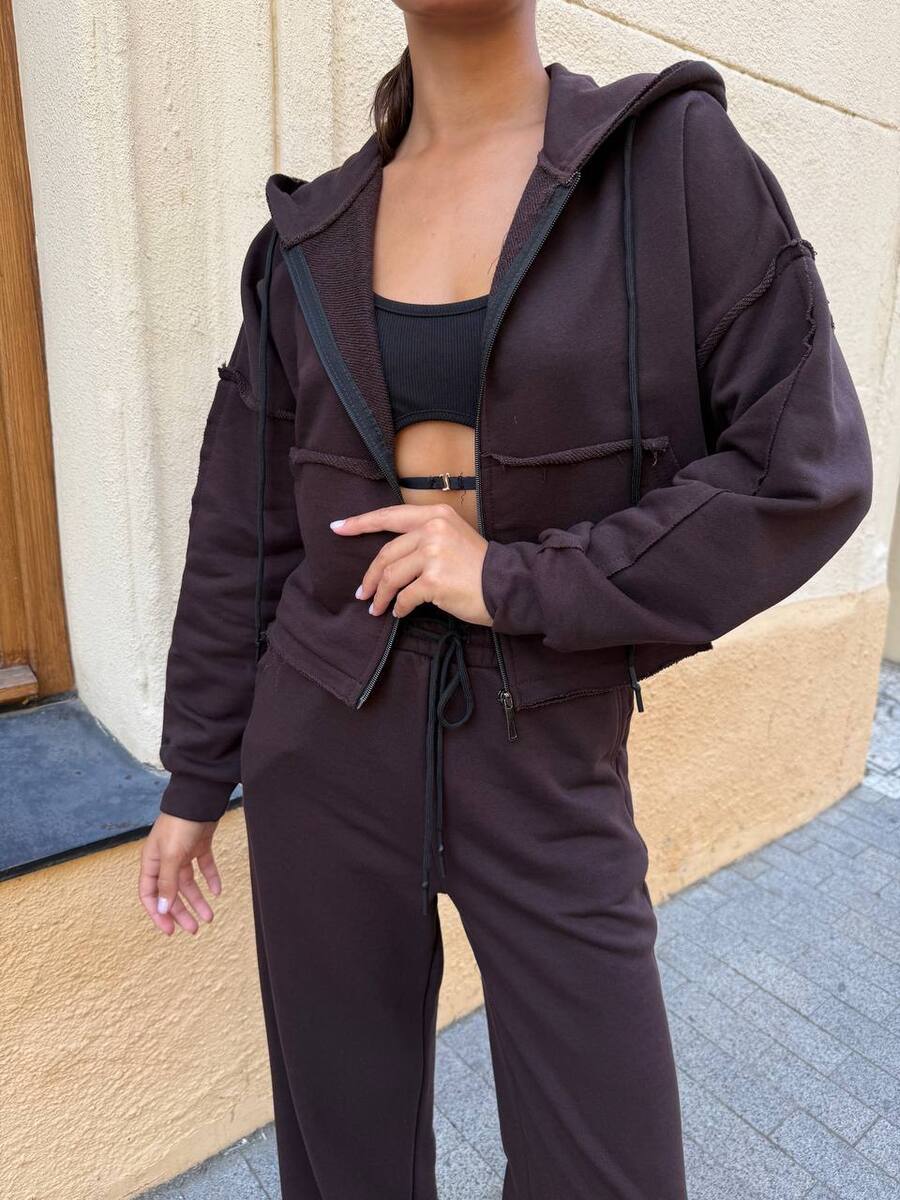 Костюм, який говорить замість тебе. Зовнішні шви, необроблені краї, кроп-топ на блискавці — кожна деталь створена, щоб виділятись.