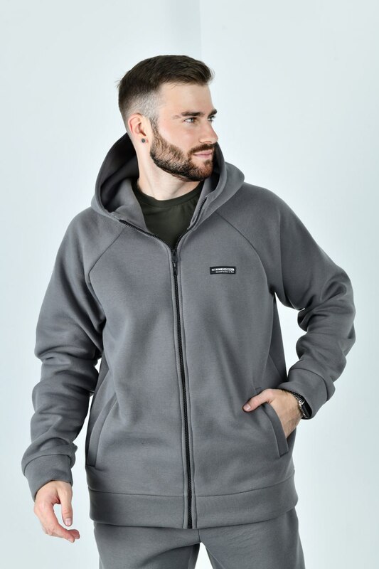 Зіп-худі із подвійним капюшоном, в куліску якого протягнуто шнурок. Рукав-реглан, на манжетах. Попереду оброблені кишені. Застібається на блискавку.