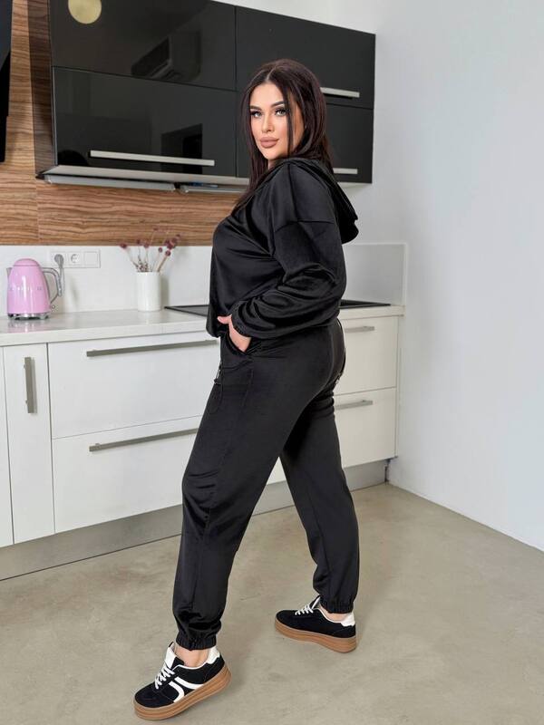 Спортивний костюм із якісного велюру. Вільний крій, кофта на затяжках по низу