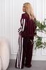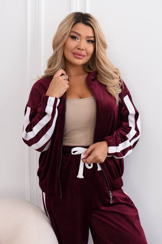 Кофта на блискавці, штанці палаццо висока посадка, пояс на резинці з робочим шнурком в поясі. Лампаси м,які х/б, тканину не стягують, дуже зручний, практичний костюм.