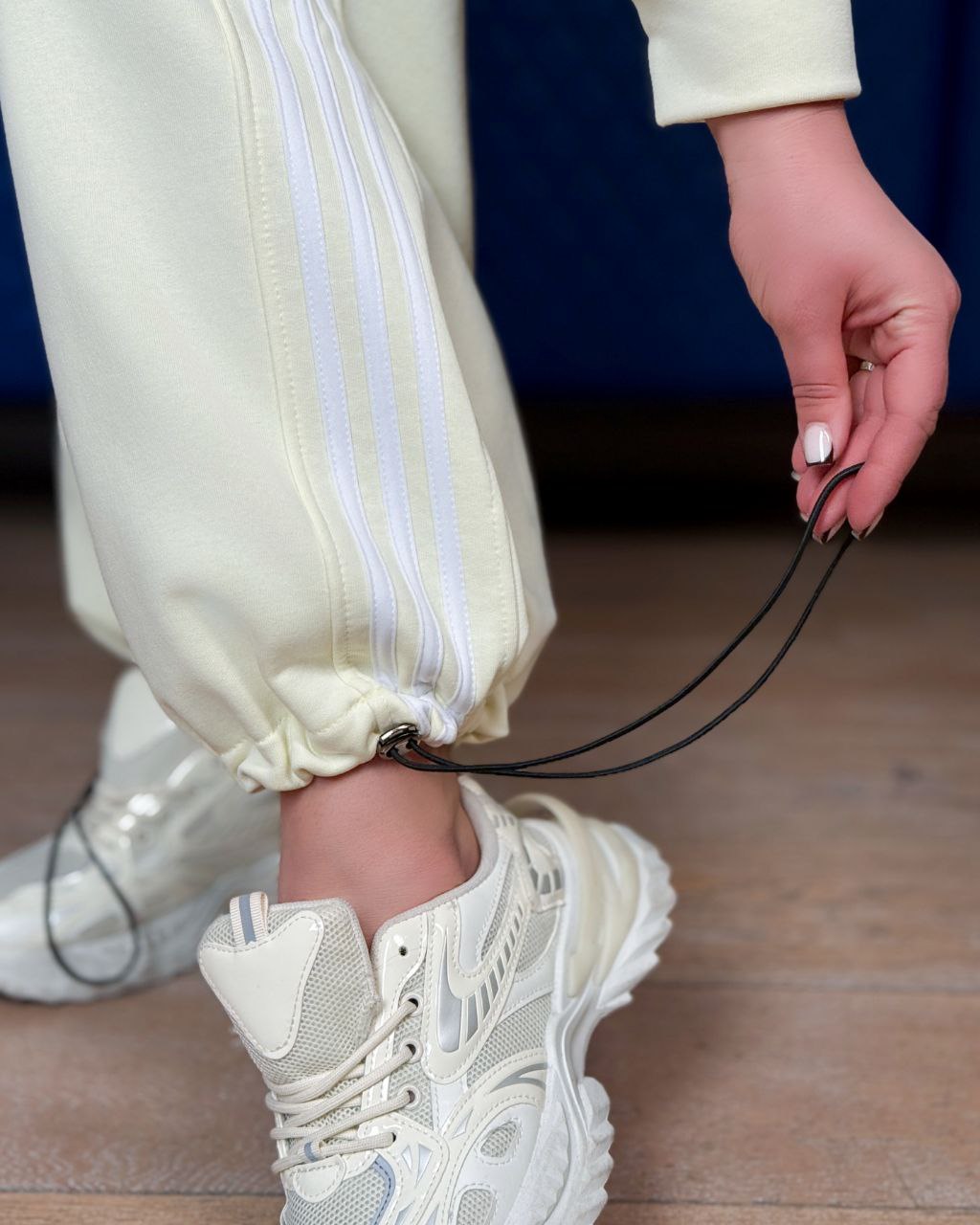 Стльний спортивний костюм з якісної тканини, яка не кошлатиться. Кофта має дві кишені, по низу куліска. Штанці - висока посадка , низ з регулюванням