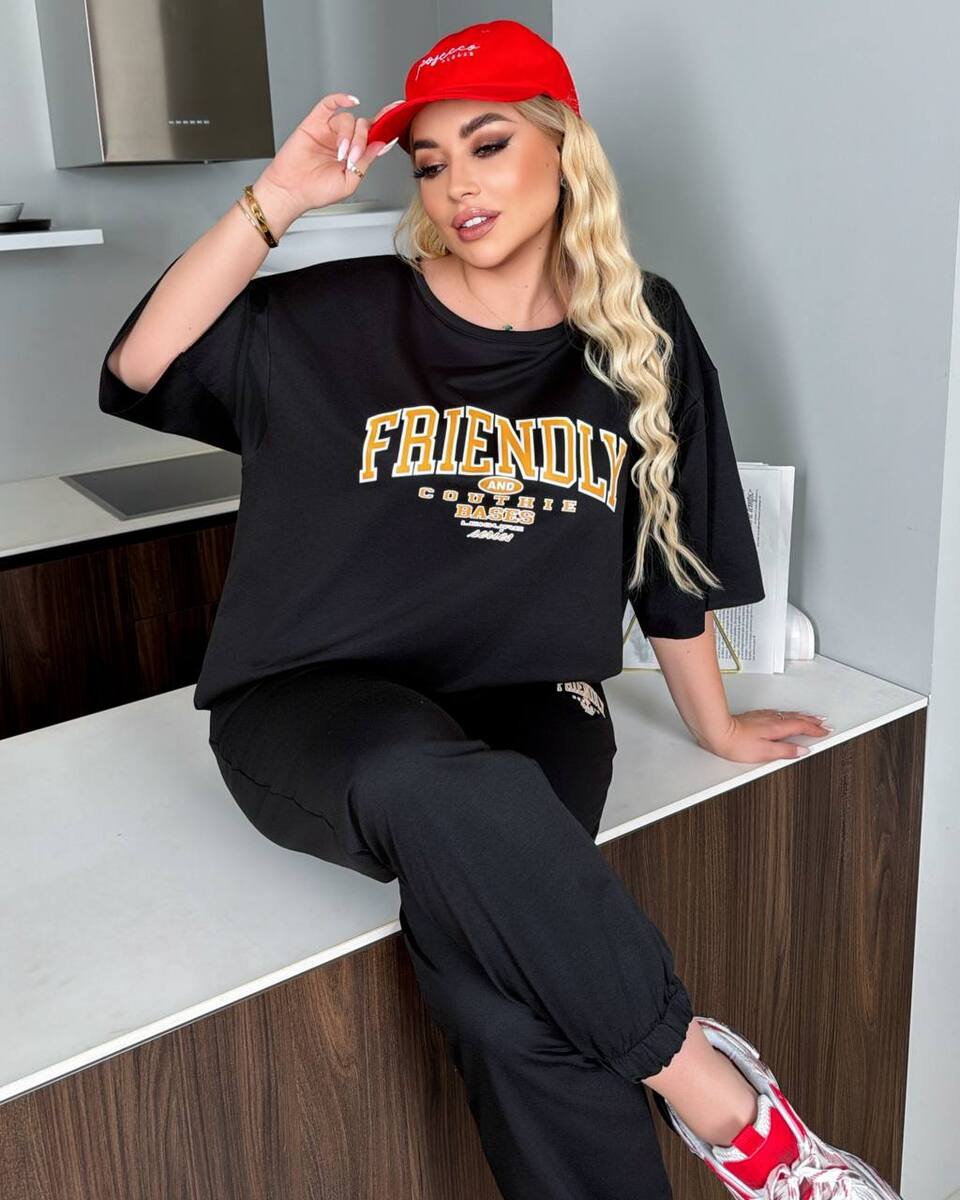 Мегакрутий спортивний костюм оверсайз. Джогери на високій посадці та оверсайз футболка робить костюм мега комфортним.
