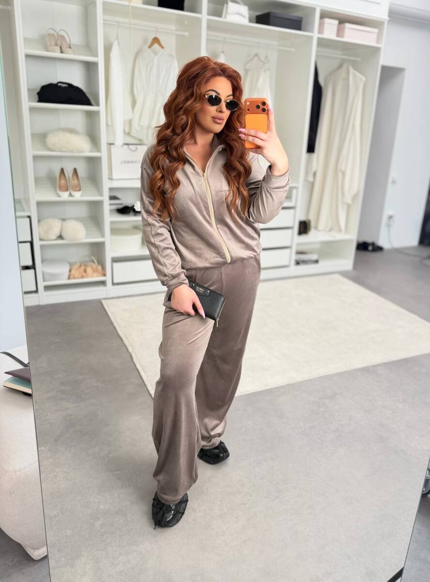 М'який, затишний та неймовірно ефектний костюм з велюру – ідеальний варіант для комфорту щодня. Тканина гарно переливається, виглядає дорого та приємно відчувається на тілі.