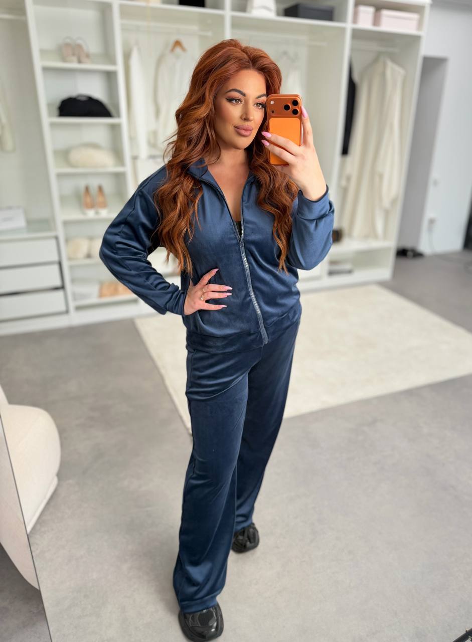 М'який, затишний та неймовірно ефектний костюм з велюру – ідеальний варіант для комфорту щодня. Тканина гарно переливається, виглядає дорого та приємно відчувається на тілі.