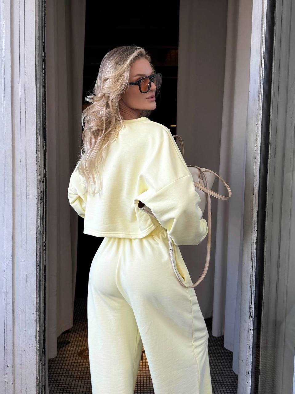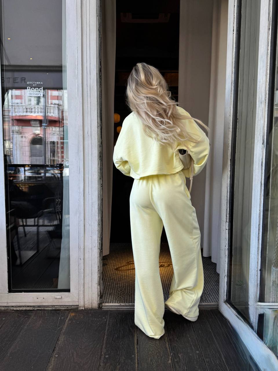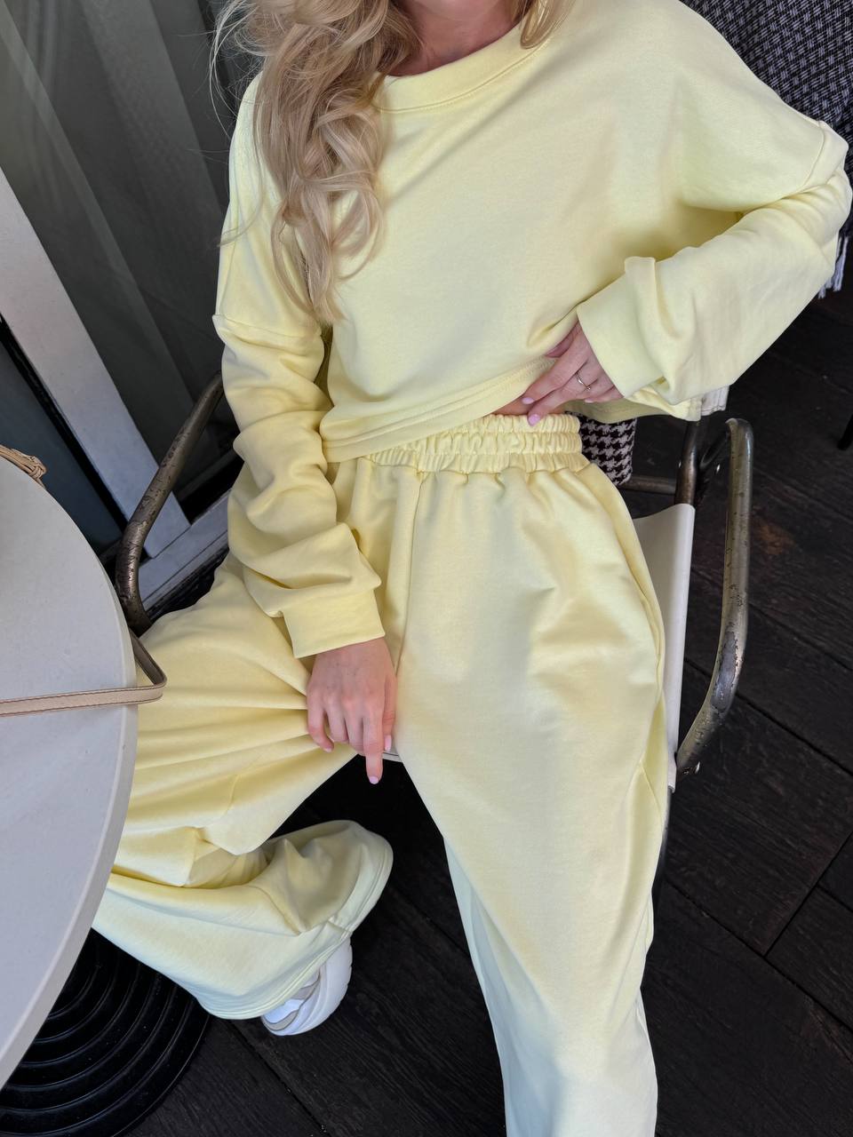 Кроп-світшот із спущеним плечем та широкі штани на резинці — ідеальний дует для прогулянки містом, кави з подругою чи просто chill-дня вдома. Виглядай модно, навіть коли максимально розслаблена