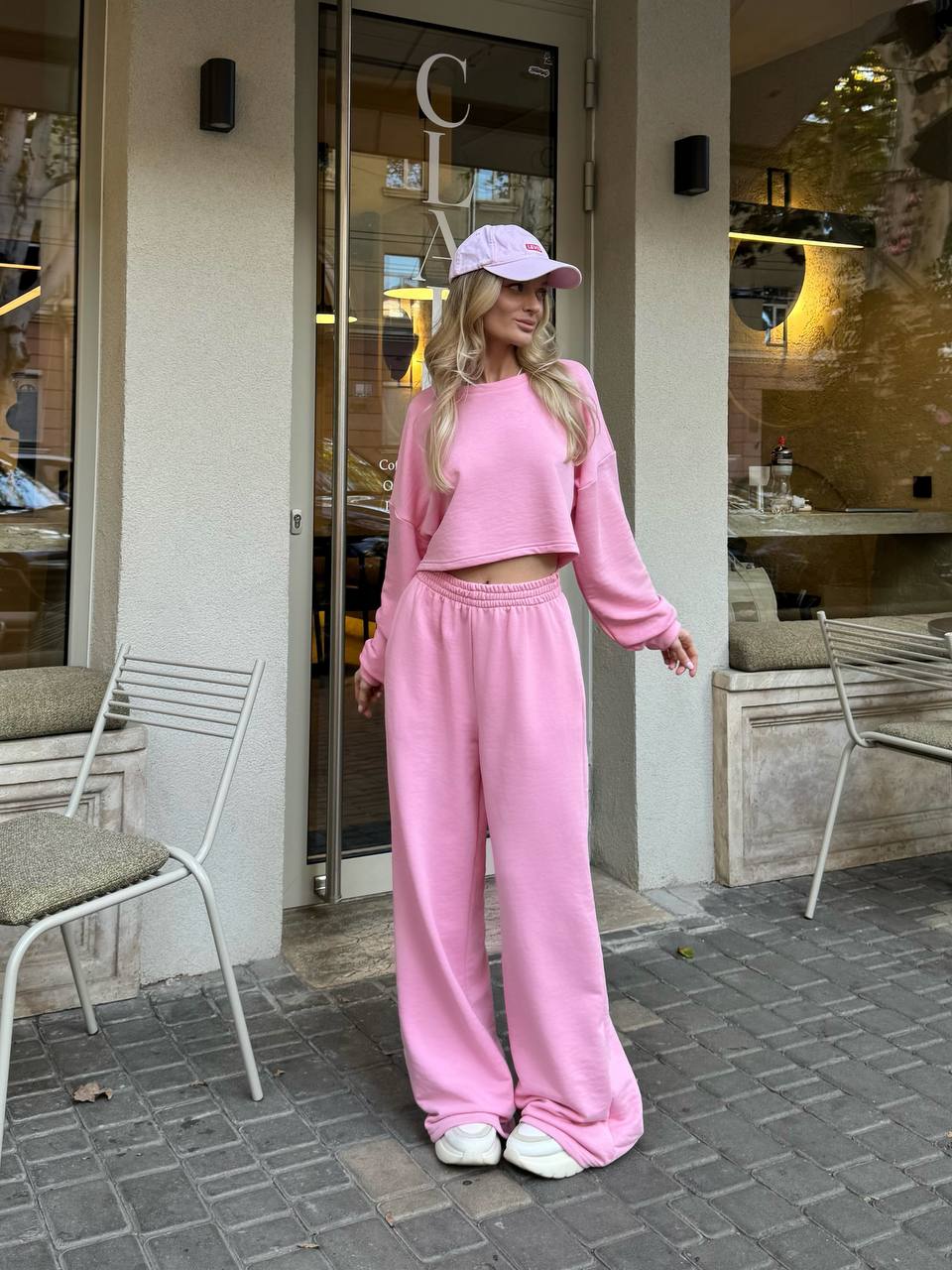 Кроп-світшот із спущеним плечем та широкі штани на резинці — ідеальний дует для прогулянки містом, кави з подругою чи просто chill-дня вдома. Виглядай модно, навіть коли максимально розслаблена