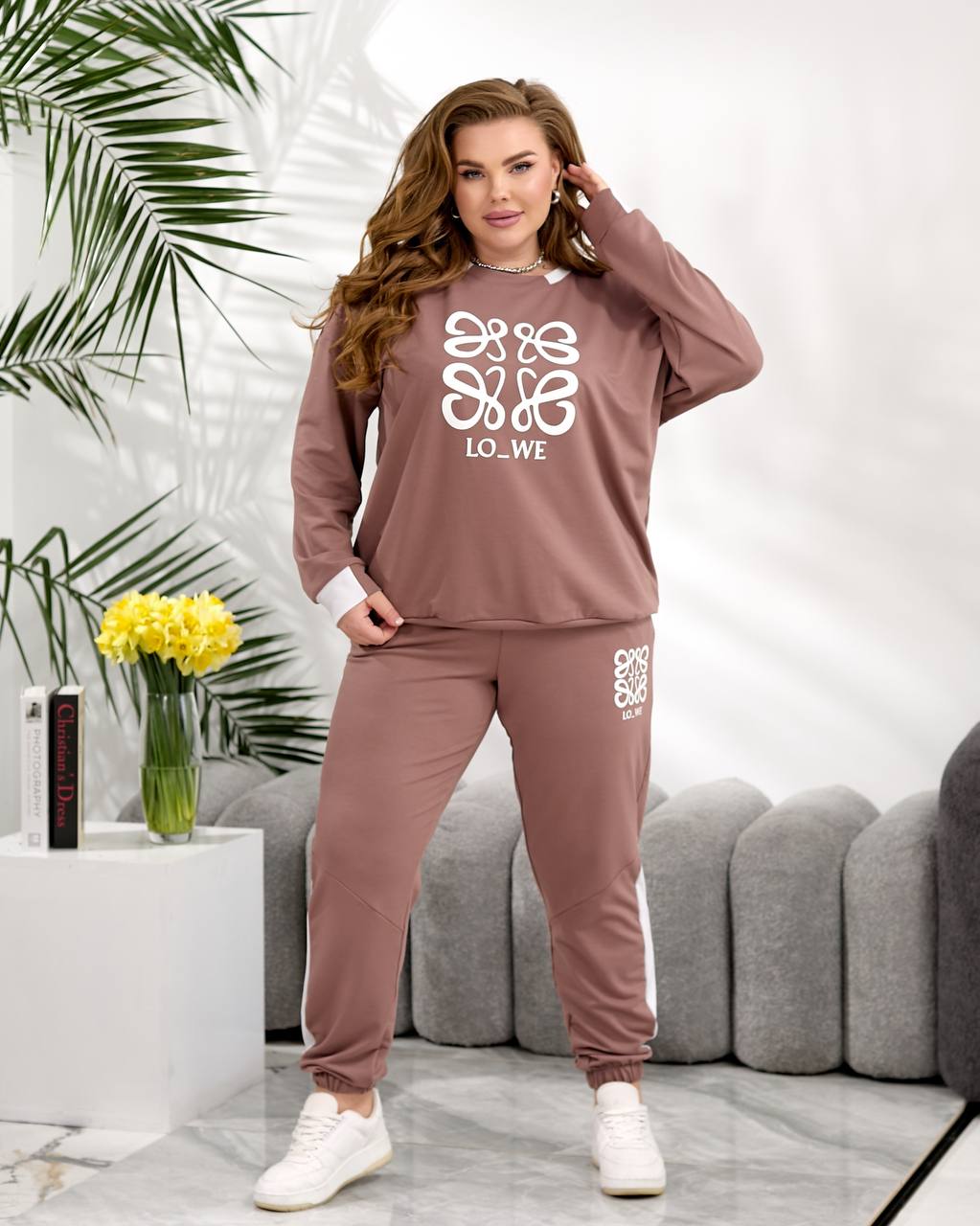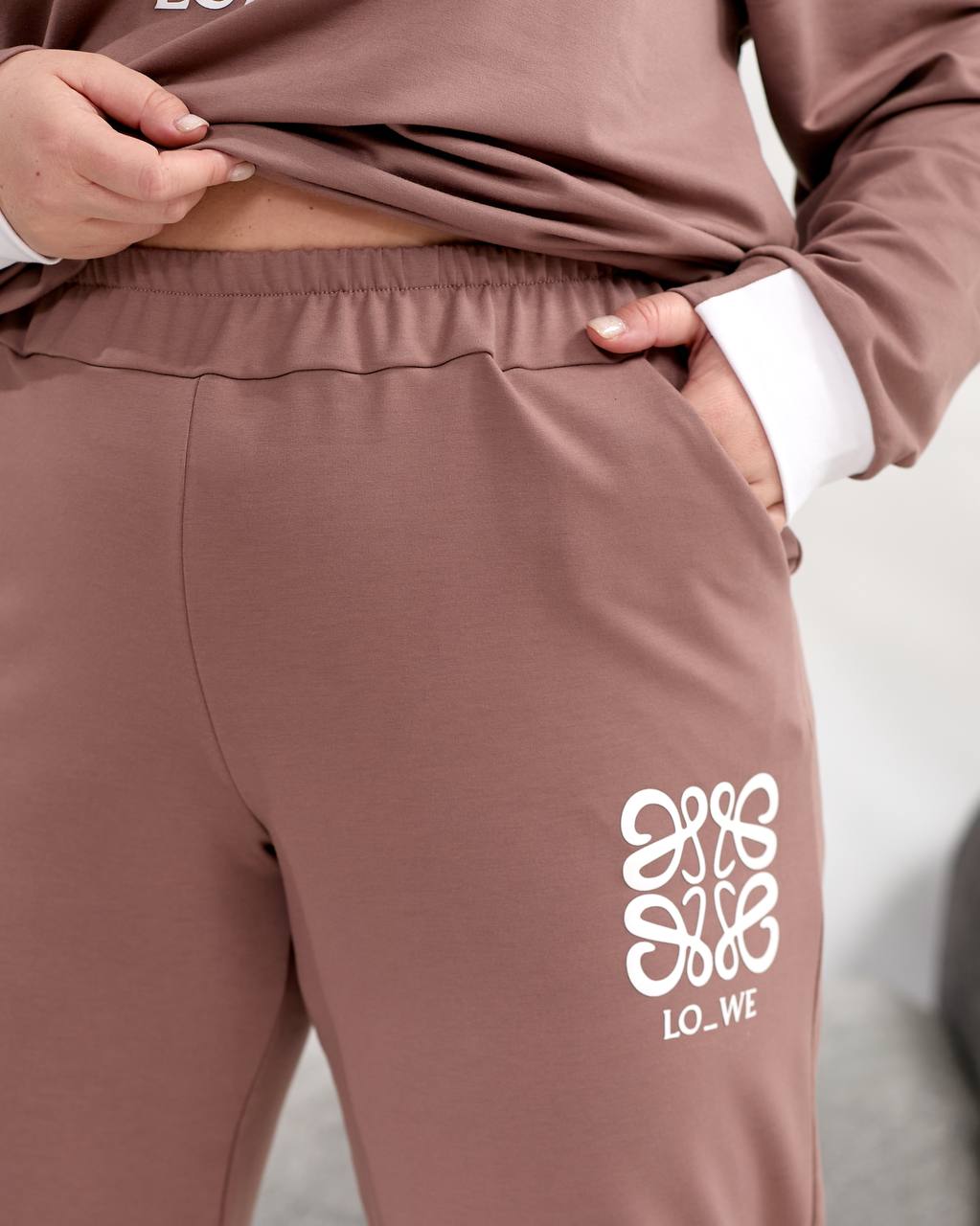 Цей затишний комплект із двонитки стане твоїм улюбленим супутником у повсякденному житті. Ефектний принт LO_WE на кофті та штанах додасть родзинку твоєму образу. Вільний крій оверсайз подарує неймовірну свободу рухів.