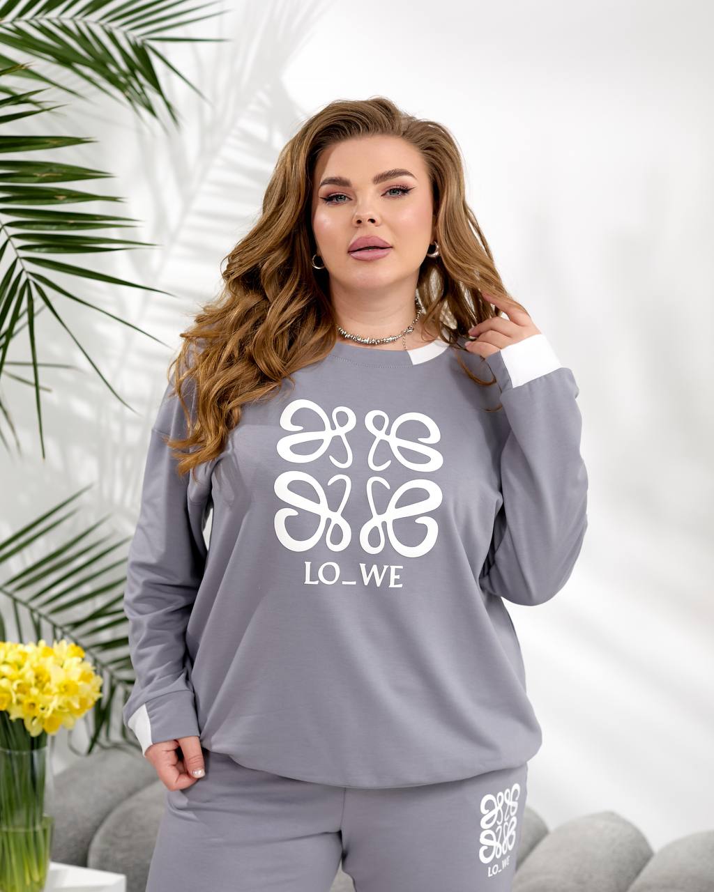 Цей затишний комплект із двонитки стане твоїм улюбленим супутником у повсякденному житті. Ефектний принт LO_WE на кофті та штанах додасть родзинку твоєму образу. Вільний крій оверсайз подарує неймовірну свободу рухів.